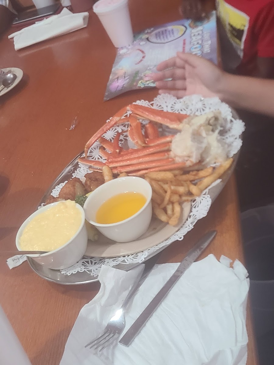 We have been going here every Monday for about 5-6 weeks for their crablegs. The staff and servers are very friendly. Jimmy is the kindest and most attentative server we met since moving here. The crablegs are good and cooked well. They keep them coming! On occassion and later in the evening they tend to get a bit soggy. This only happened once or twice. The sides and shrimp aren't bad. I ordered a baked potato one of the weeks and it was cold and possibly baked to far in advance. No big deal and it didn't ruin my experience. Their ice tea is fresh and actually tastes like tea! We love our ice tea! Overall the food is good, the service is outstanding and the prices are reasonable. We will keep going back!!!!