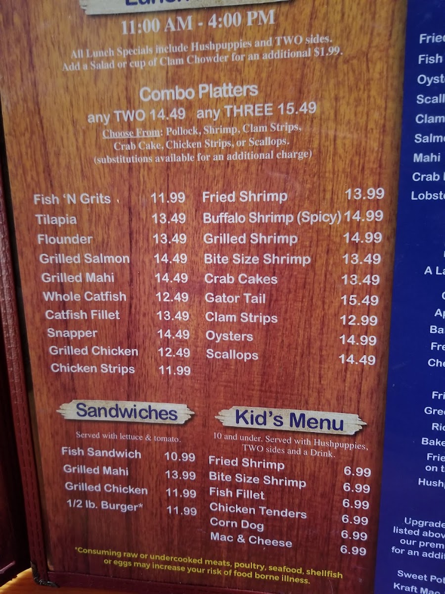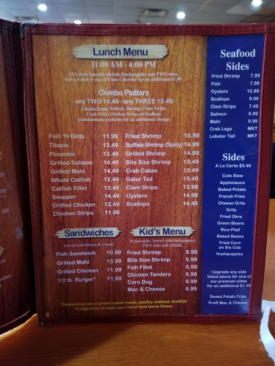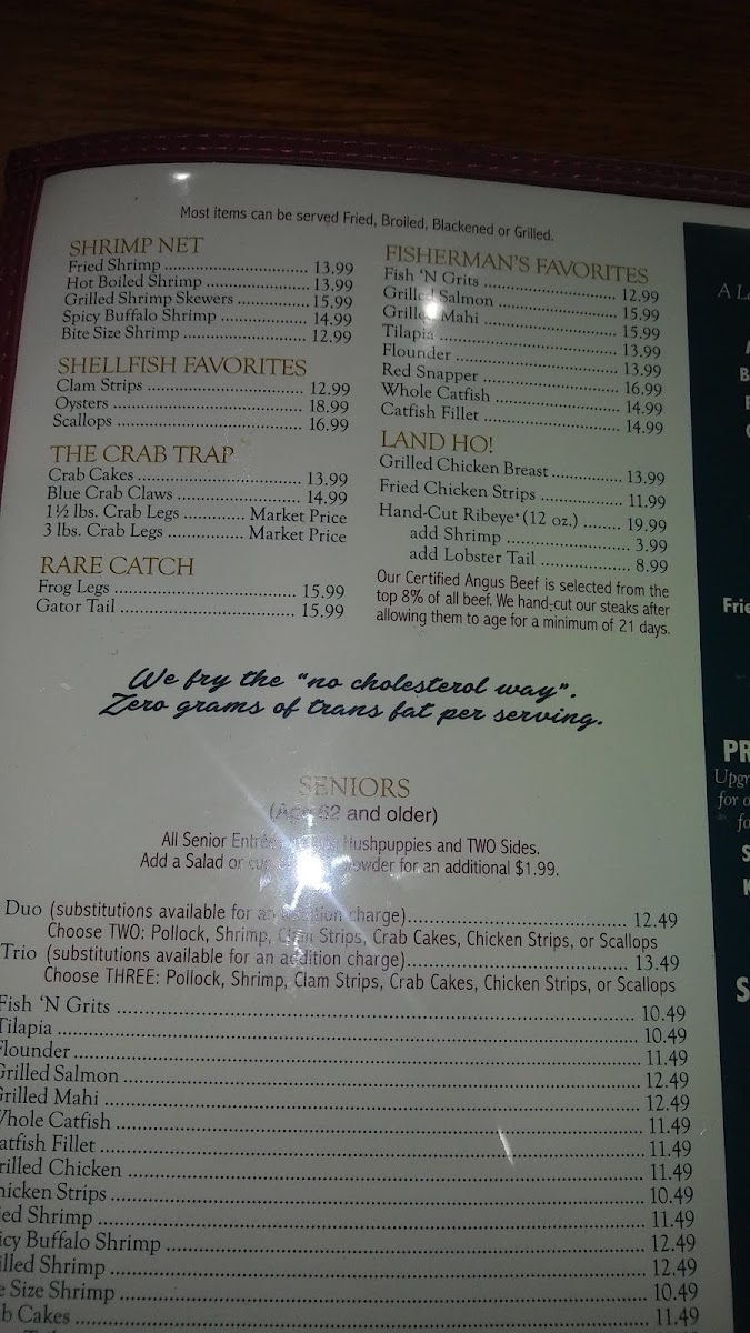 Crystal River Seafood Menu