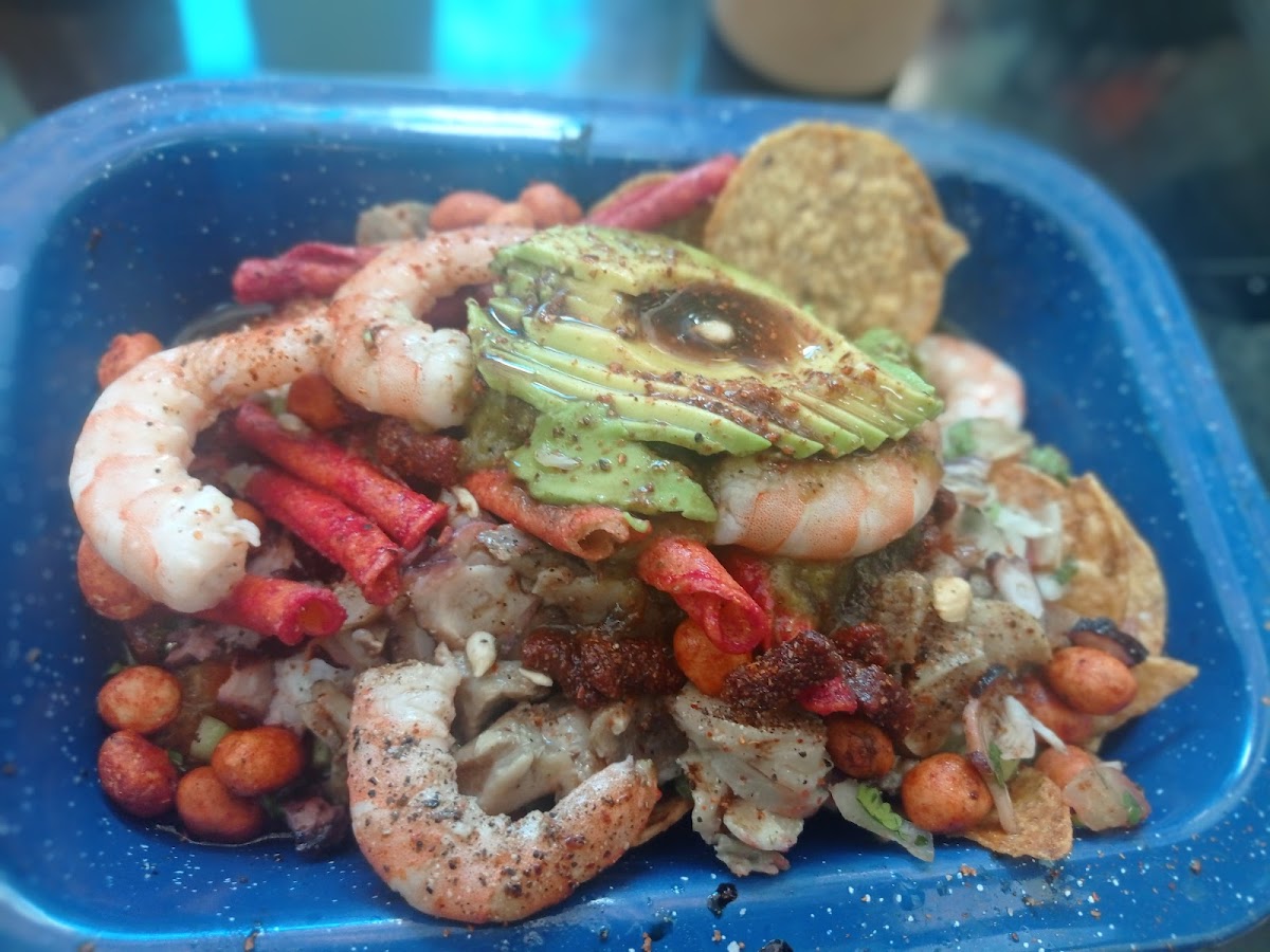 Cubamanta Mariscos Y Algo Mas is located at Av. Michoacan 295, San Benito, 83190 Hermosillo, Son., Mexico. This seafood restaurant is well-known with 656 user reviews and offers a total menu featuring a variety of dishes. Notable meals include Se Me Hizo Agua, Cóctel de Camarón, Aguachile En Molcajete Y Un Bichi de Caguamanta, Tostada Individual Cachoreada, and Taco Estupido, highlighting its focus on seafood with a unique twist.
