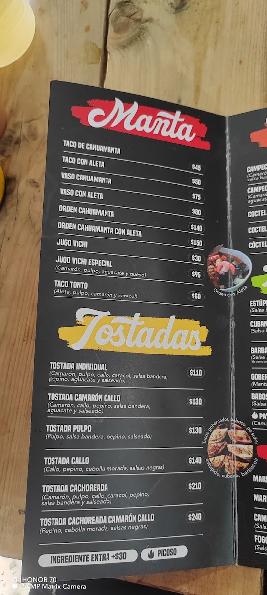 Base de caguamanta con aleta, caracol, pulpo,camaron, aguacate, queso y salteado de la casa, 32 oz,