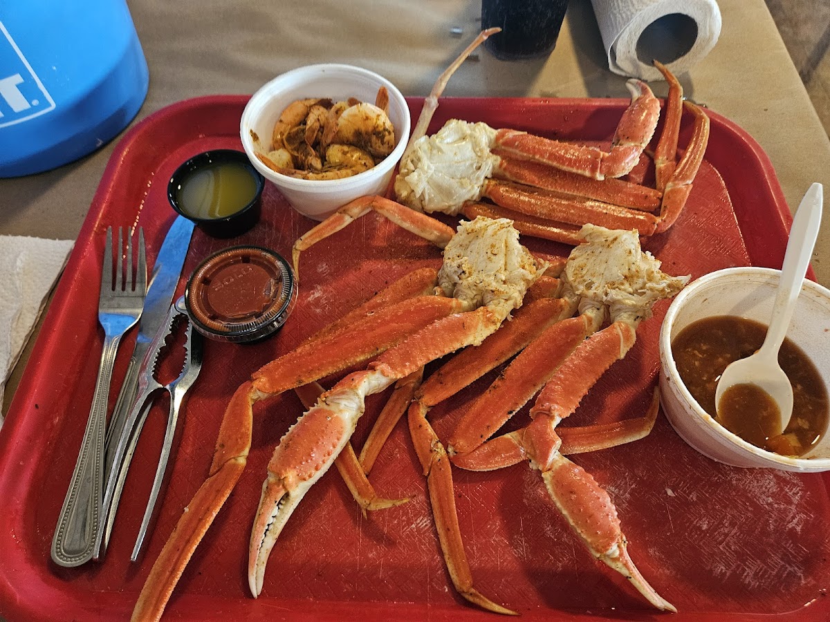 Laid back and fun place! Our waitress was wonderful, food just took a while to get at the start but once it started coming it was all good! Moist, easy pull crab legs, yummy hush puppies, and the vegetable crab soup was great too!