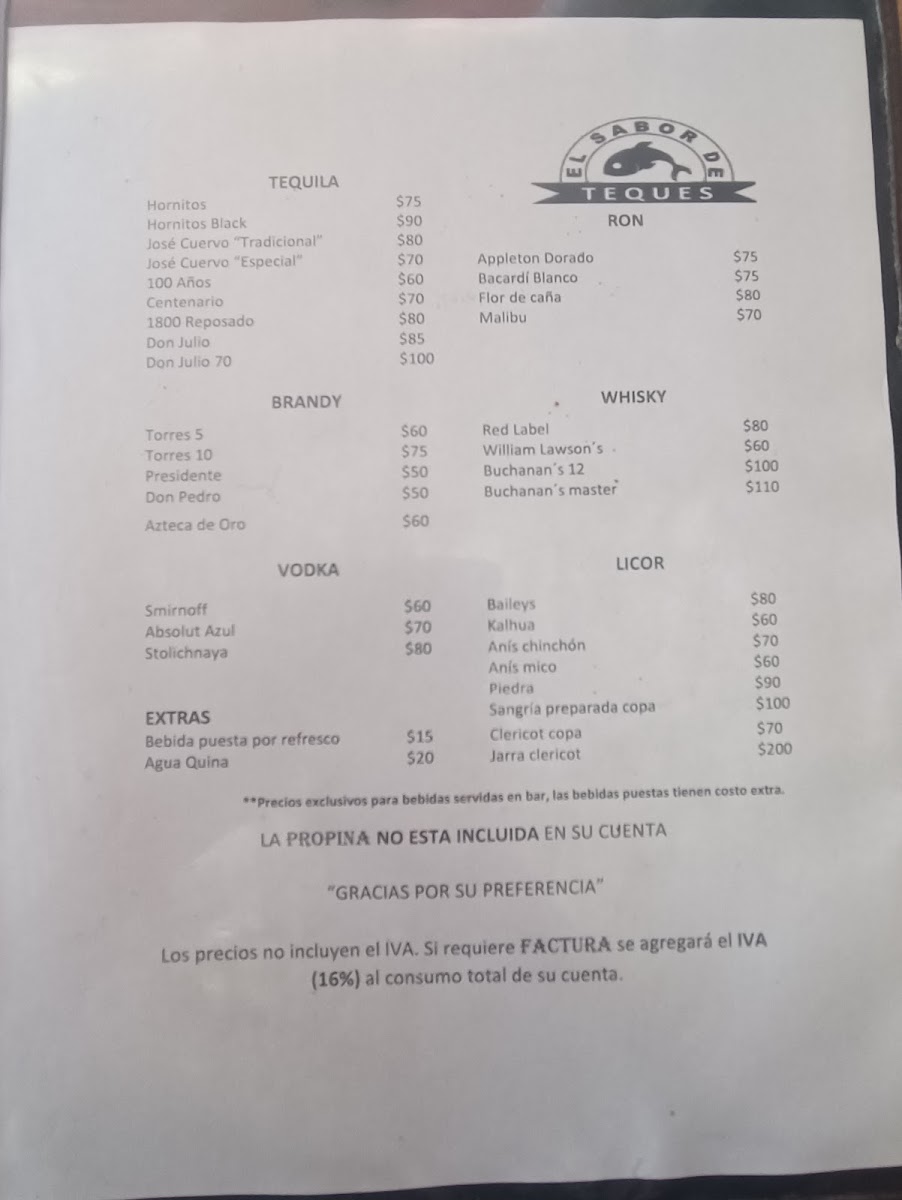 El Sabor De Teques Menu