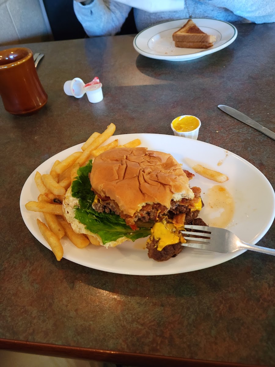 First time at this locally owned restaurant and it's on my gotta try again when in the area. Went with their really big cheeseburger with fries. Fast service, meal as ordered in a more than you can eat size, but I did. Great prices, friendly service and a hometown feel!