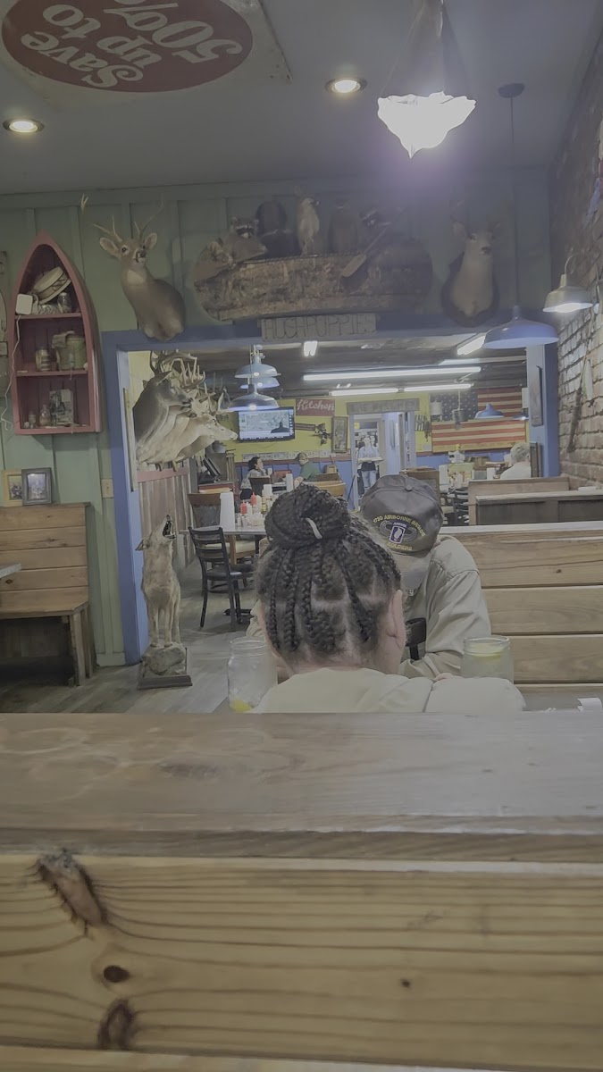 I was passing through the area and decided to stop here because my family and friends said it was a good place for fish. I was so hungry I forgot to take pictures when my food came out. I ordered the fish and shrimp with two sides (baked potato and chow chow). I enjoyed it all except for the little bitty baked potato! It was the side of an baseball! Lol They do offer an all you can eat catfish but that was a bit much for me! I will definitely go back when I'm in the area! Prices were great too...you won't be disappointed!! Sorry about the pics didn't think about pics till after!