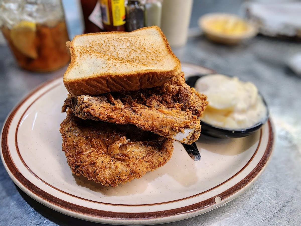 Very friendly, cheerful service by our waitress. It took a while, but the chicken fried steak was nice and had very crispy breading and no voids in it. I opted for the turnip greens which were tasty and the mashed potatoes went well with the steak. Alas, we did not have room for pie. Another plus is the large size of the drink glasses, I really hate the dinky glasses that other places use.
