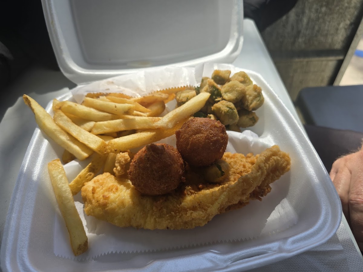 The Blackened Red Snapper was perfectly cooked, seasoned and extremely tasty. My wife's Blackened Grouper was also perfect. Of other special note the Hush Puppies are the best I have ever tasted and I have eaten my fair share over the years. This is a food truck like business so do not let that dissuade you from driving there for some of the best southern seafood you will ever find.
