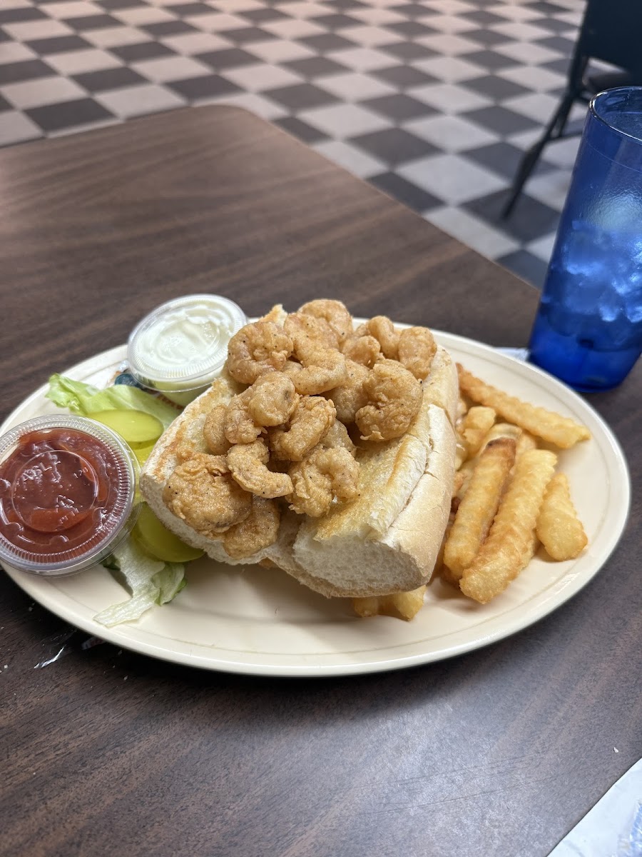 My husband and I stopped in for lunch on the way back to Memphis from Orange Beach. All the staff were super friendly, and the catfish, hush puppies, and slaw were delicious. The slaw is a little too sweet on its own, but it’s very good with the fish. They also have fried green tomatoes that were good; not the best I’ve ever had but good.