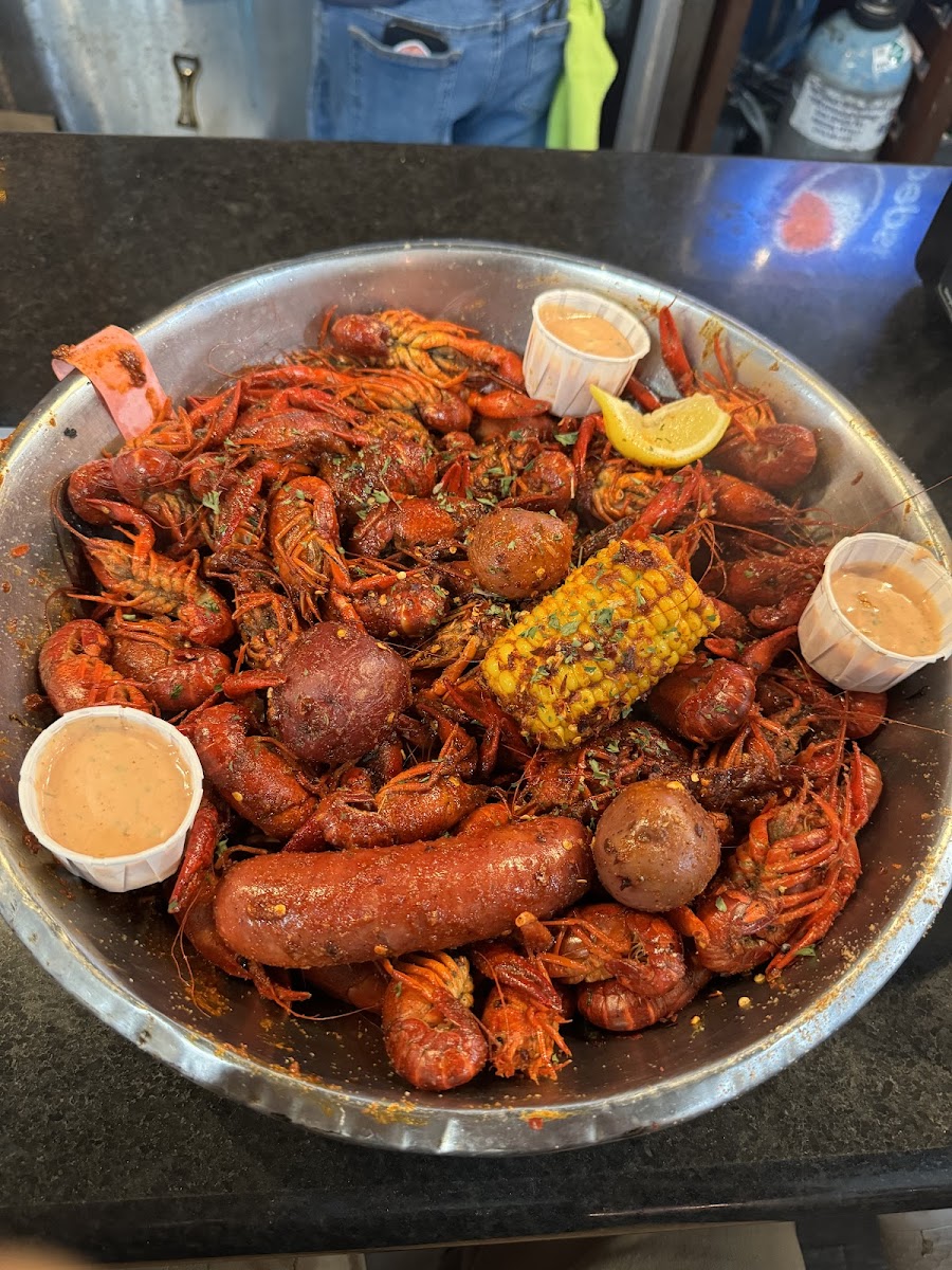 The crawfish here is so, so good. I recommend mixing the citrus spice and garlic lemon for an amazing flavor combination. They do tend to sell out pretty early so you should show up before 5pm. Try and keep in mind that it is a smaller place and you will see the owner on the floor cleaning tables and pouring drinks, so be patient. The food is definitely worth the wait.