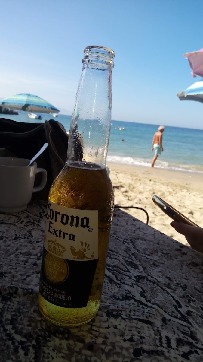 A charming place with amazing on the sand dining. The sunset was stunning. The coconut shrimp appetizer was excellent. The waiter suggested stuffing my vegetarian chile relleno with vegetables, and it’s the best I’ve ever had. The other two really enjoyed their fish. Great beer selection. Victoria cerveza is so good! An unforgettable experience.