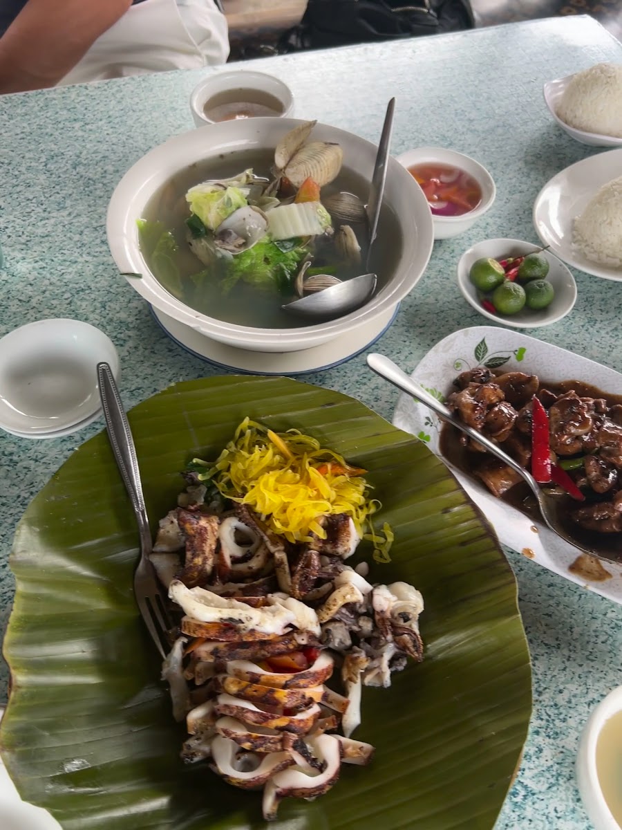 They are seafoods resto with a wide dining space. They have more or less 15 huts where you can eat your meals and the huts can cater 6-8 person. They also have a wide area with tables where you can choose to sit and have your meals. When we first visit here we ordered Shell soup at P350.00 and "Lato" (Sort of sea grass) seasoned with vinegar and spices and rice at P15.00. And during our second visit here we ordered "Sinabawang Isda" (Pompano Fish) at P500.00 and "Adobong Pusit" at P540.00 and rice still at P15.00. They have available drinks/Softdrinks and service water. The waitresses/waiters are kind and so attentive, they will assist you in everything you need. Payment is anytime you can just pay right after you eat for the purpose that you may add any other order while eating and they will just take note of your priority number or hut number. They have 2 big refrigerators where you can choose what seafood you want to order. Available seafoods are a variety of fish, squid, shrimp, shells and many more. Everytime we visit here for dinner it is not crowded I don't know during lunch time. Amenities: Parking area for cars - can cater up to 10 cars only, road parking. Parking area for Motorcycles - can cater 20-25. Comfort room - 1 for males and 1 for females. Over all our dining experiences here were good. They deserved 5 stars for delicious foods, good ambiance and of course 5 stars service. Thanks a lot. I will definitely come back here soon.