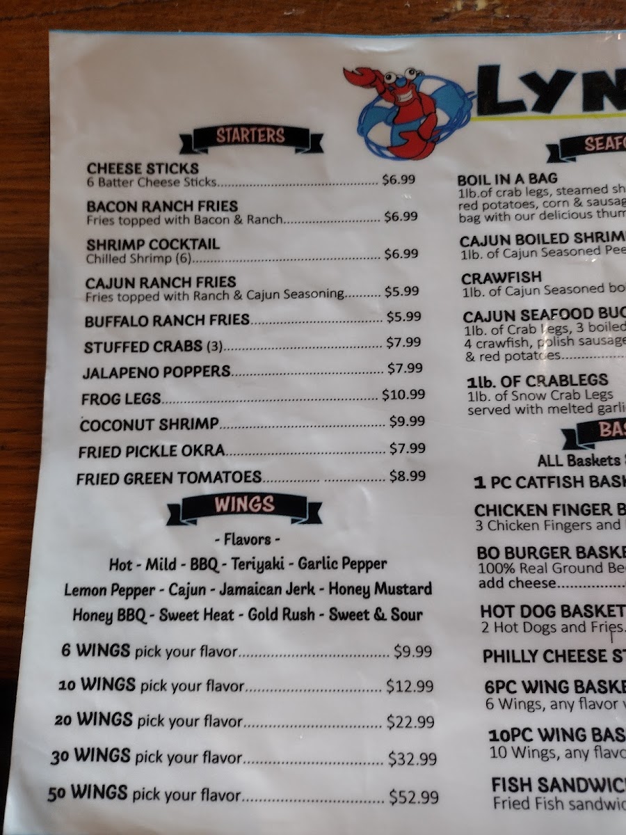 2 pc fish fried or garlic, cajun or lemon pepper served with slaw and your choice of fries or baked potato