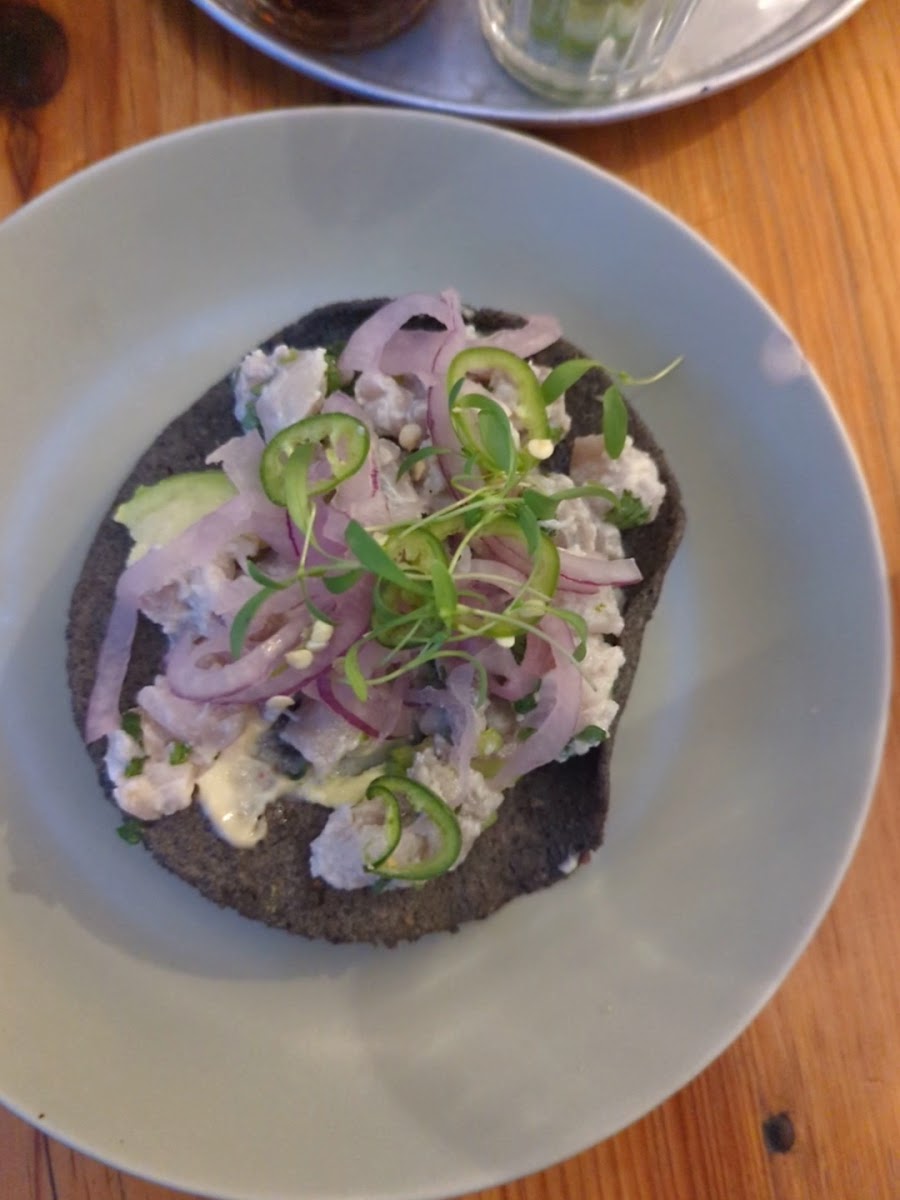 Really fresh seafood tostadas and one of the best fish tacos I’ve ever had. It’s quite charming and in a very peaceful part of town! Highly recommend the tuna tostadas and fish tacos.