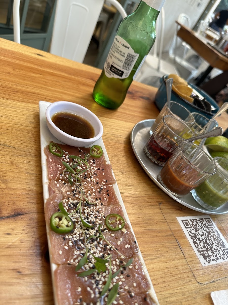 We were on our way to another restaurant when we walked past Marlindo. The place was packed with locals and the food smelled great. We quickly pivoted and got a table outside. We had the ceviche, tuna, garlic shrimp, and fried fish burrito. The first two items were average but the garlic shrimp and fish burrito were the best I’ve had. In fact, the garlic shrimp was better than any dish we had at Contramar.