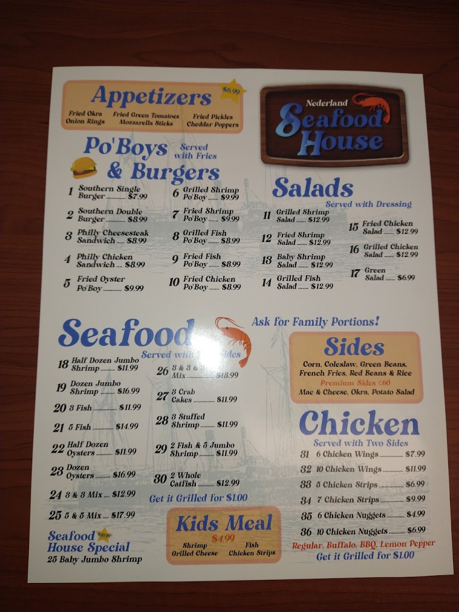 Twenty five pieces of baby jumbo shrimp. Served with two sides.