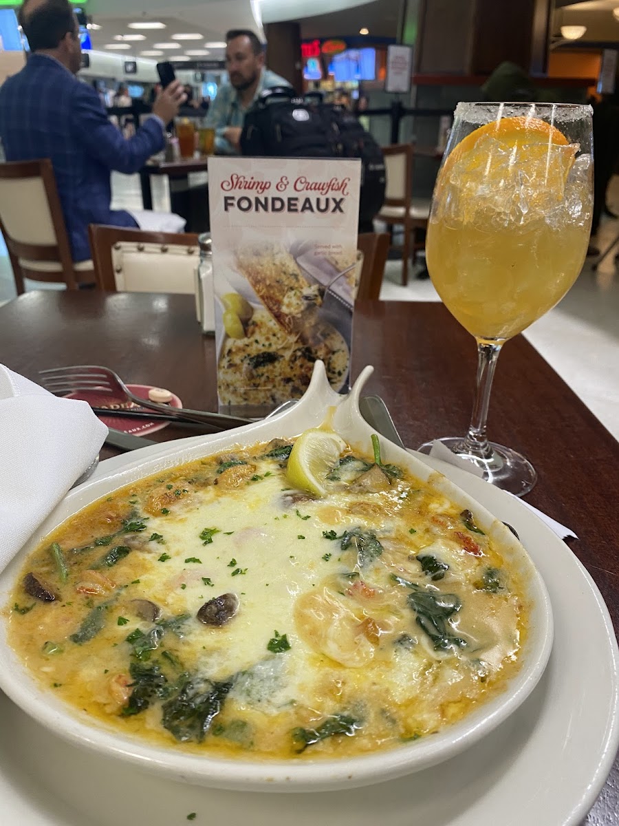 Fairly good Cajun cuisine. Good service. The prices are fairly high but somewhat expected for an inside-the-airport restaurant. We had the fried shrimp and chicken tenders and the house salad with seafood gumbo. The gumbo is pretty brothy compared to what I’m used to. The fried shrimp is excellent! The fried chicken tenders were just ok.
