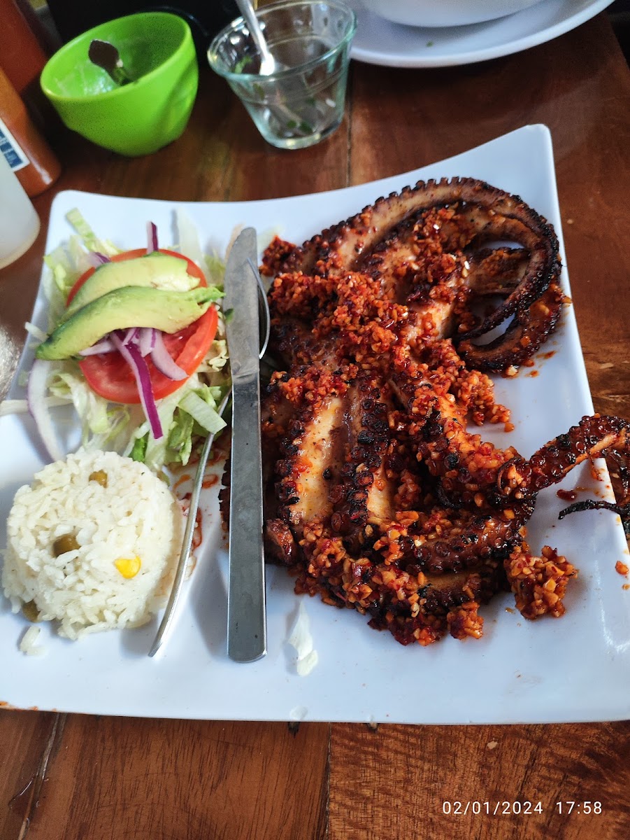 Visiting from Canada and love this restaurant! Real authentic fresh food is easily found here!! We hade the grilled octopus which was amazing and tender and also had the octopus tacos and ceviche. Everything tasted amazing and was a great portion size for the price. Service was 10/10 from the waiter to the cook himself! I highly recommend if you want real authentic tacos and fresh seafood