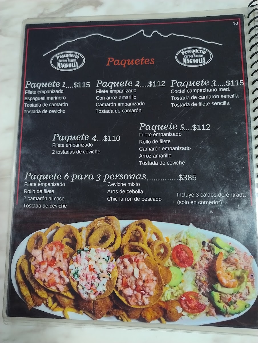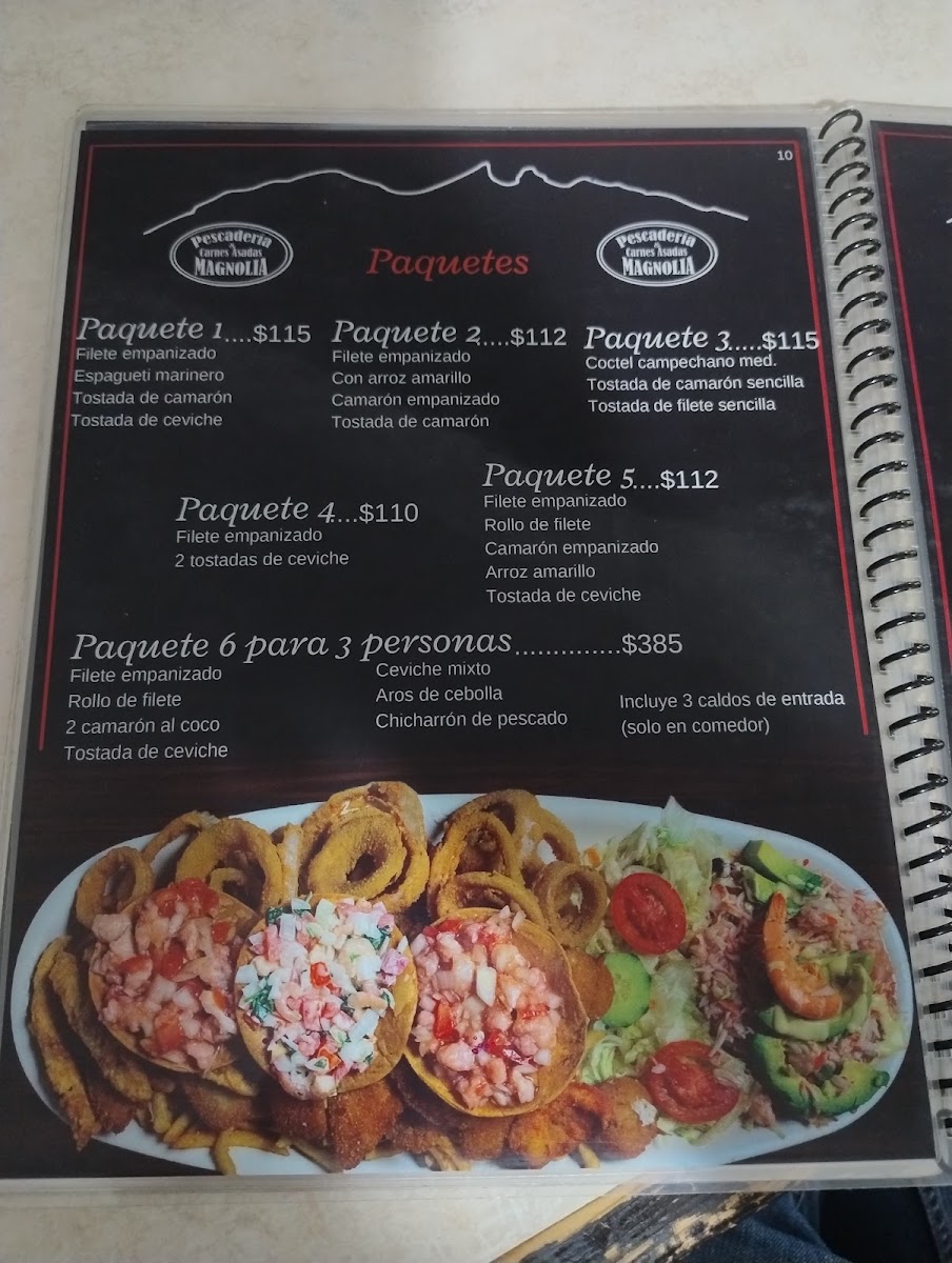 2 tostadas de camarón2 filetes empanizados2 cocteles chicos1Lt. caldo de pescado sencillo