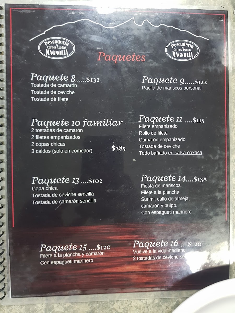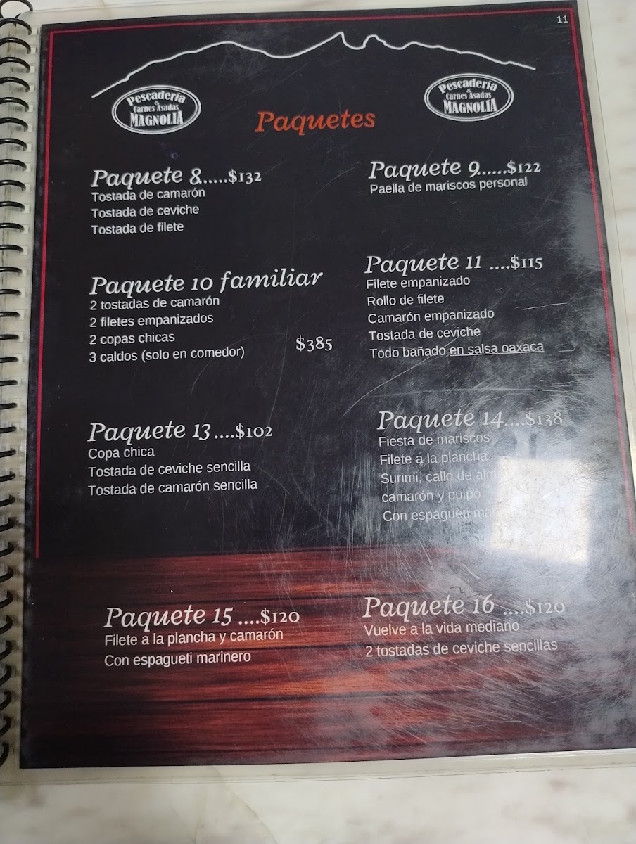 Filete, rollo de filete, camarón empanizado, tostada de ceviche, todo en salsa oaxaca.