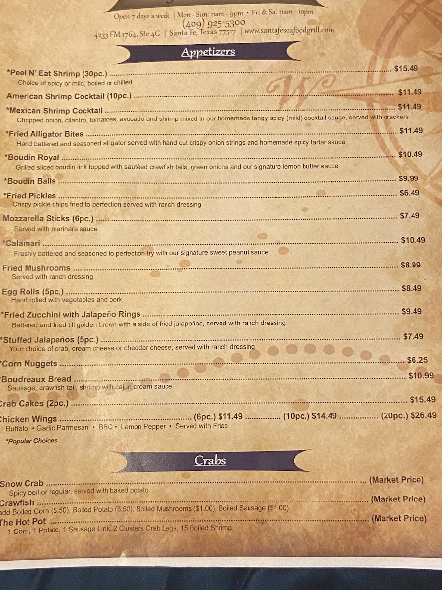your choice of crab, cream cheese, or cheddar cheese