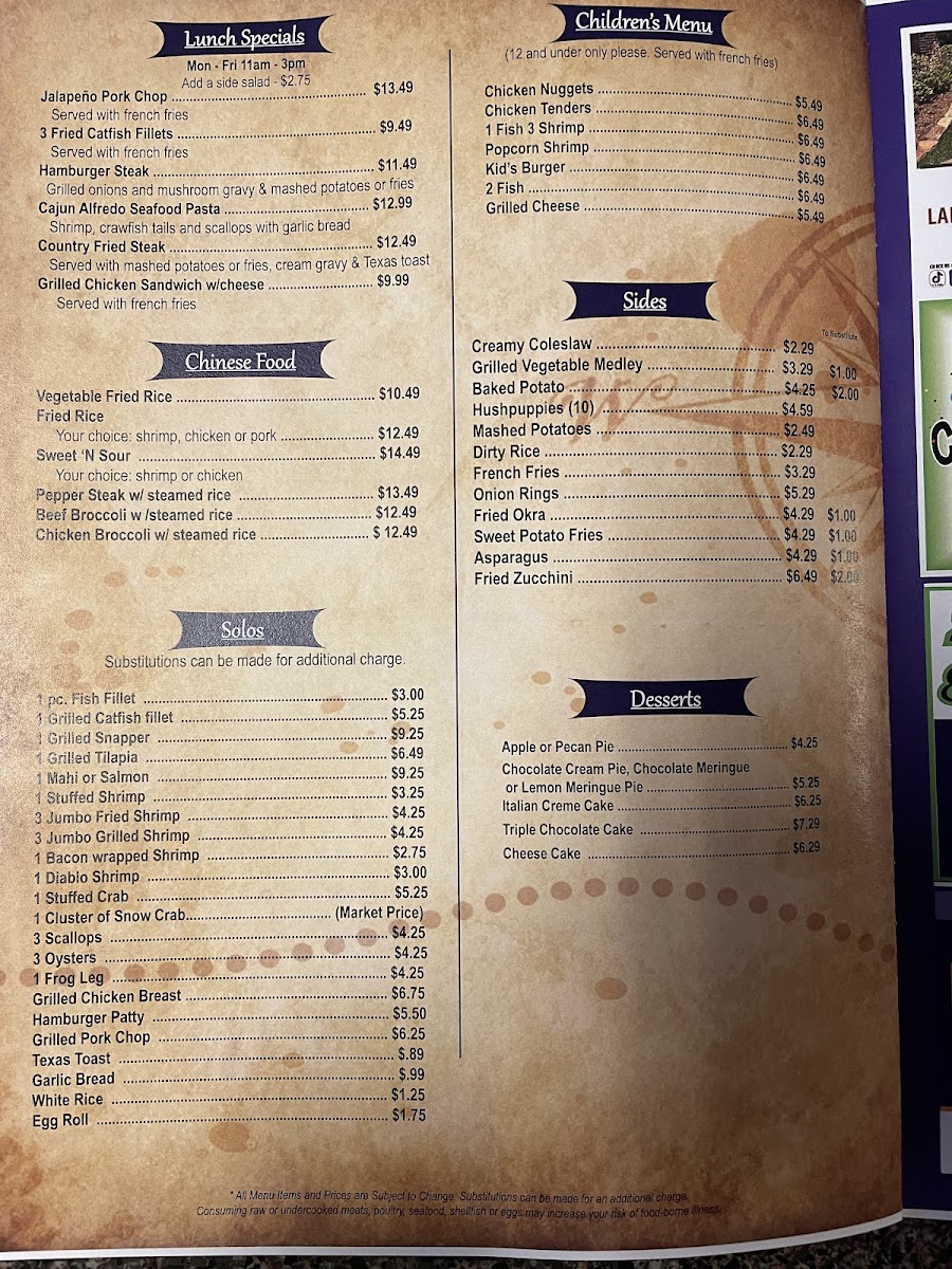 1 Fried Catfish Fillet & 6 Shrimp & 6 Crawfish Tails.......