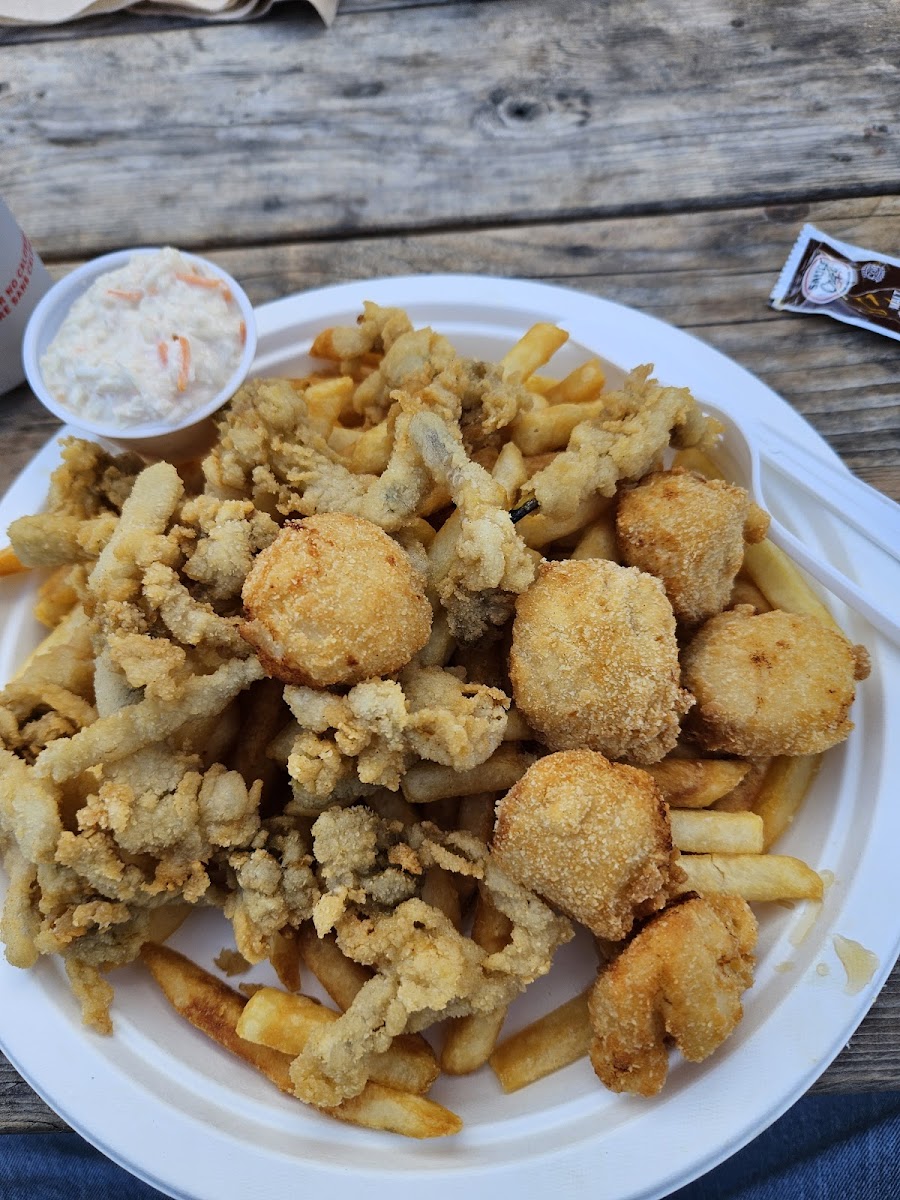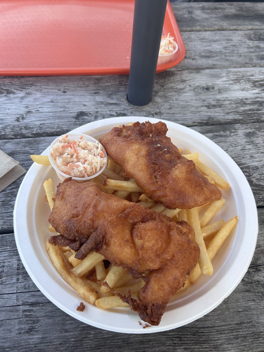 Great seafood spot, large fish in platter, great quality. It was a little rushed and batter was a little mushy but the fries saved the day, delicious. My mom really enjoyed her clams aswell. Lots of outside picnic tables