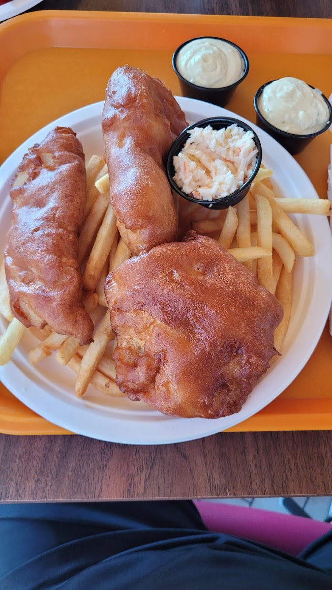 The best fish and chips we've had this year for sure. The batter was the perfect texture and consistency. The fish was cooked perfectly, and seemed quite fresh. Great classic diner vibes. We arrived around 11:45 a.m. and had our food in front of us by noon. We'll likely come back again while we're visiting in the area this week. 10/10 experience all around!