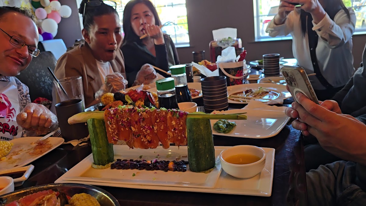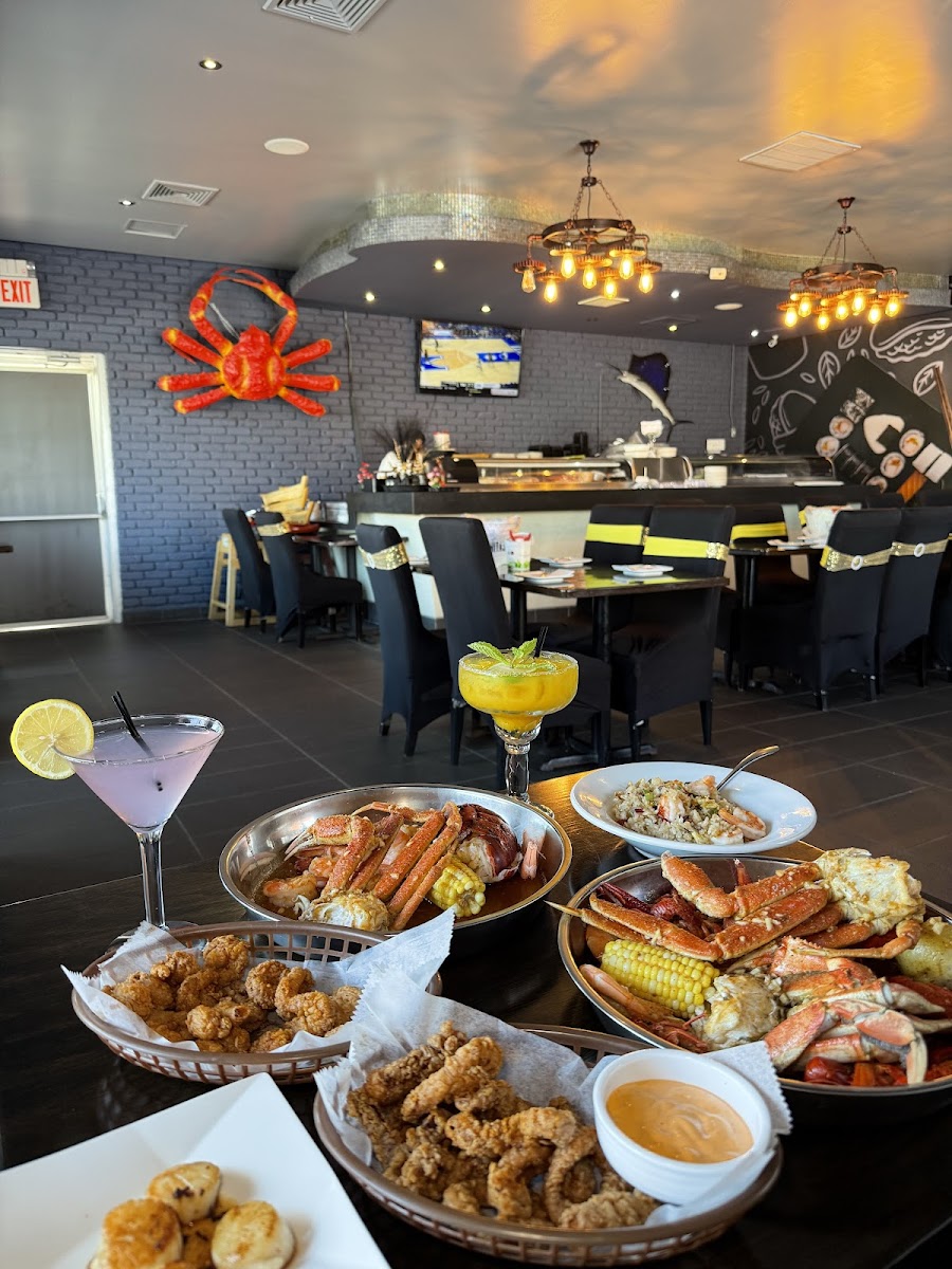 Parking can be a little difficult when it gets busy on a weekend night - you may have to park behind on side by motel located next to sexy crab. Service was amazing - helpful and attentive. If you go for someone’s birthday - the birthday guest is free if you have 5 other adults paying. They have 2 options of their menu - one with sushi a la carte and the other with the Cajun seafood broil and sushi. Their drinks were great and I definitely recommend them. We got various sushi items which we loved. The fried rice 6/10 were not worth it as it will fill you up but wasn’t that great. The Kani salad was decent 7/10. The broil was amazing 9/10 - I recommend the corn, scallops, noodles, sausage, crab, potato. You also have an option to get a lobster tail but for an extra fee.