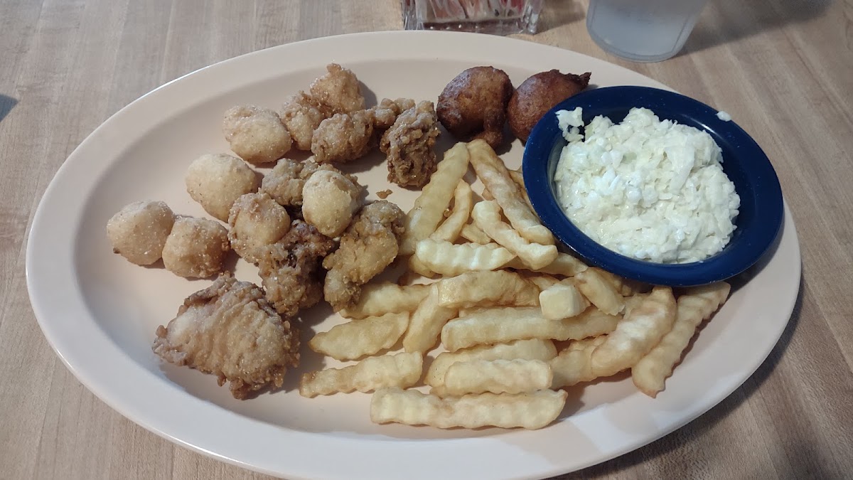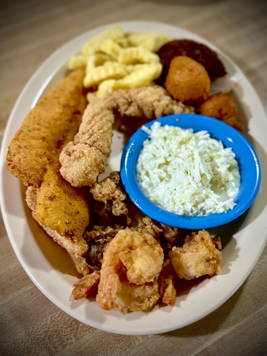 I’m from Florida and have had some of the freshest and most delicious fried seafood you can find, but little did I expect this little Mom and Pop restaurant only open for dinner three nights a week to have fried catfish that would rival them all. Daaaaaaaaaaaang! The whole meal was delicious, but ironically my favorite bite was even on my seafood platter. I got the Captain Andy’s platter which was wonderful. Each type of seafood was cooked to perfection and I appreciated that they didn’t use the same batter on all the different types of options on the plate, but the best fish that was oddly not included was the Catfish. In my opinion, they should just have a section of the menu where it’s the “Catfish Combo” section where every meal comes with catfish and you just pick the other seafood options you want to go with it. The scene when we arrived was obviously a green flag. A bunch of elderly retired folk and families were lined up outside the door just before 5:00 pm waiting to get in. It was in the mid-90’s so we stayed in the car until the line started moving, but they seated us efficiently and the wait to place our order was well attended by two different waitresses. One lady came to get our drink order while our main waitress, Jamie, came by periodically to let us know where we were in order of the tables that were sat before us. Jamie was very attentive and came around regularly to check on us and to refill our half and half tea that she poured simultaneously from two jugs of tea that she carried with her almost constantly, half from the sweet jug and the other from the unsweetened. The ratios were remarkably balanced the whole time. She was the picture of southern hospitality. If you’re ever in the area and have a hankering for some proper fried seafood, don’t be shy and stop by Snellgrove Ssafood. You won’t be disappointed, especially if Catfish is part of your order.