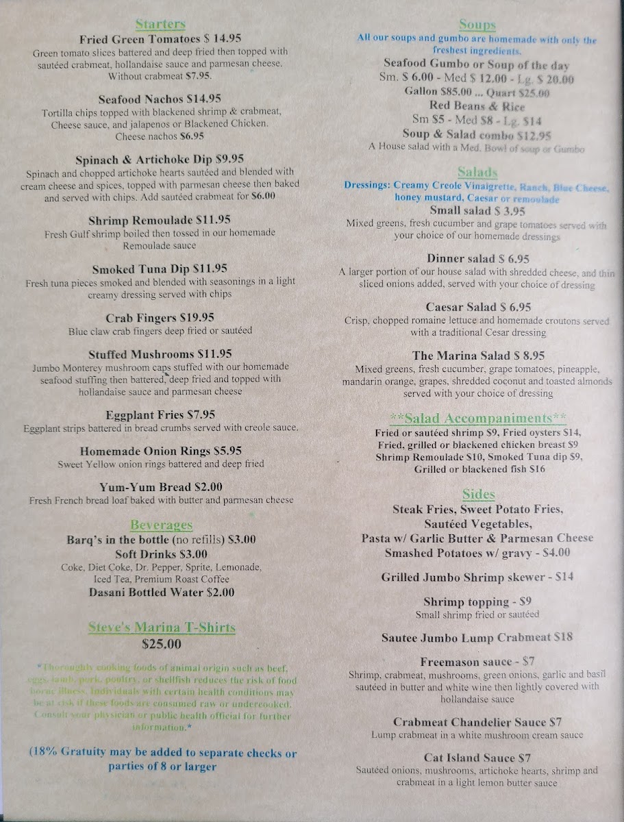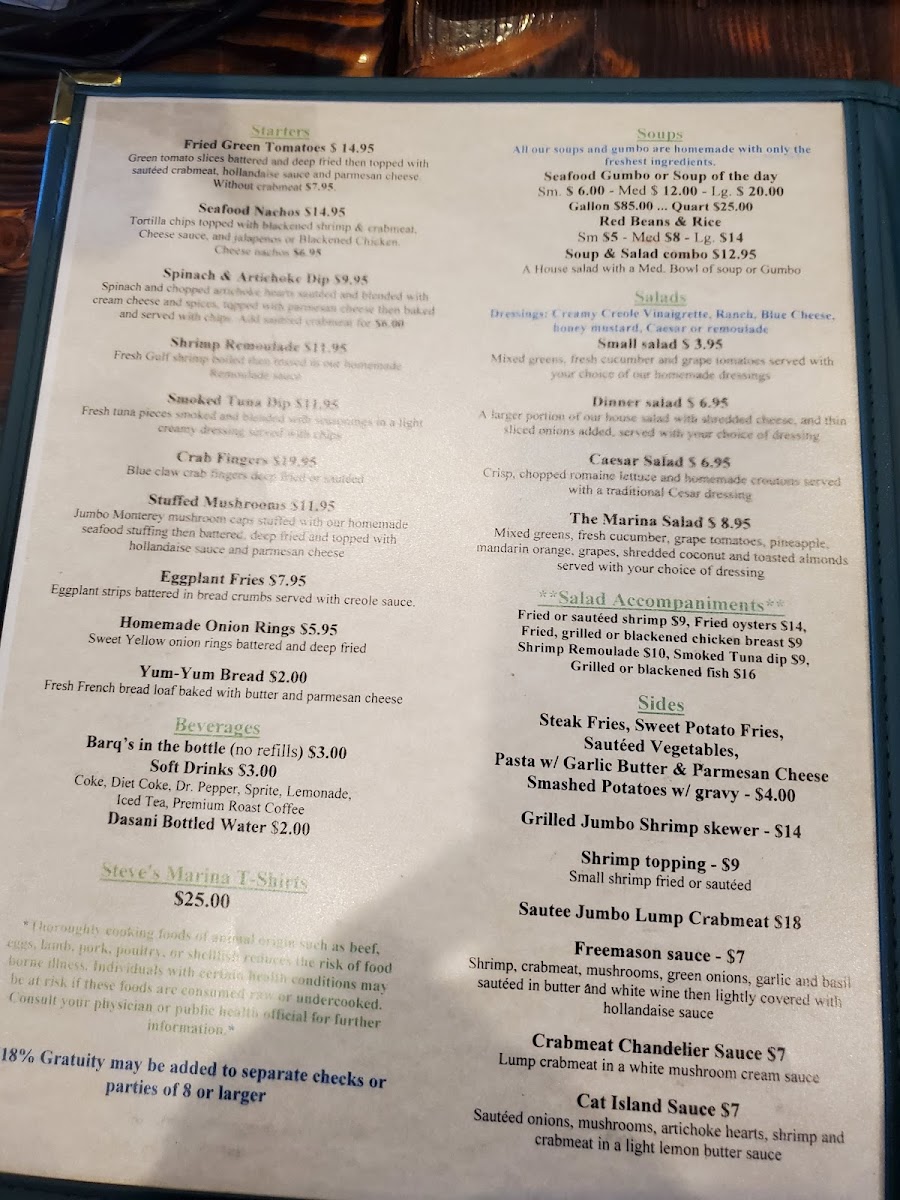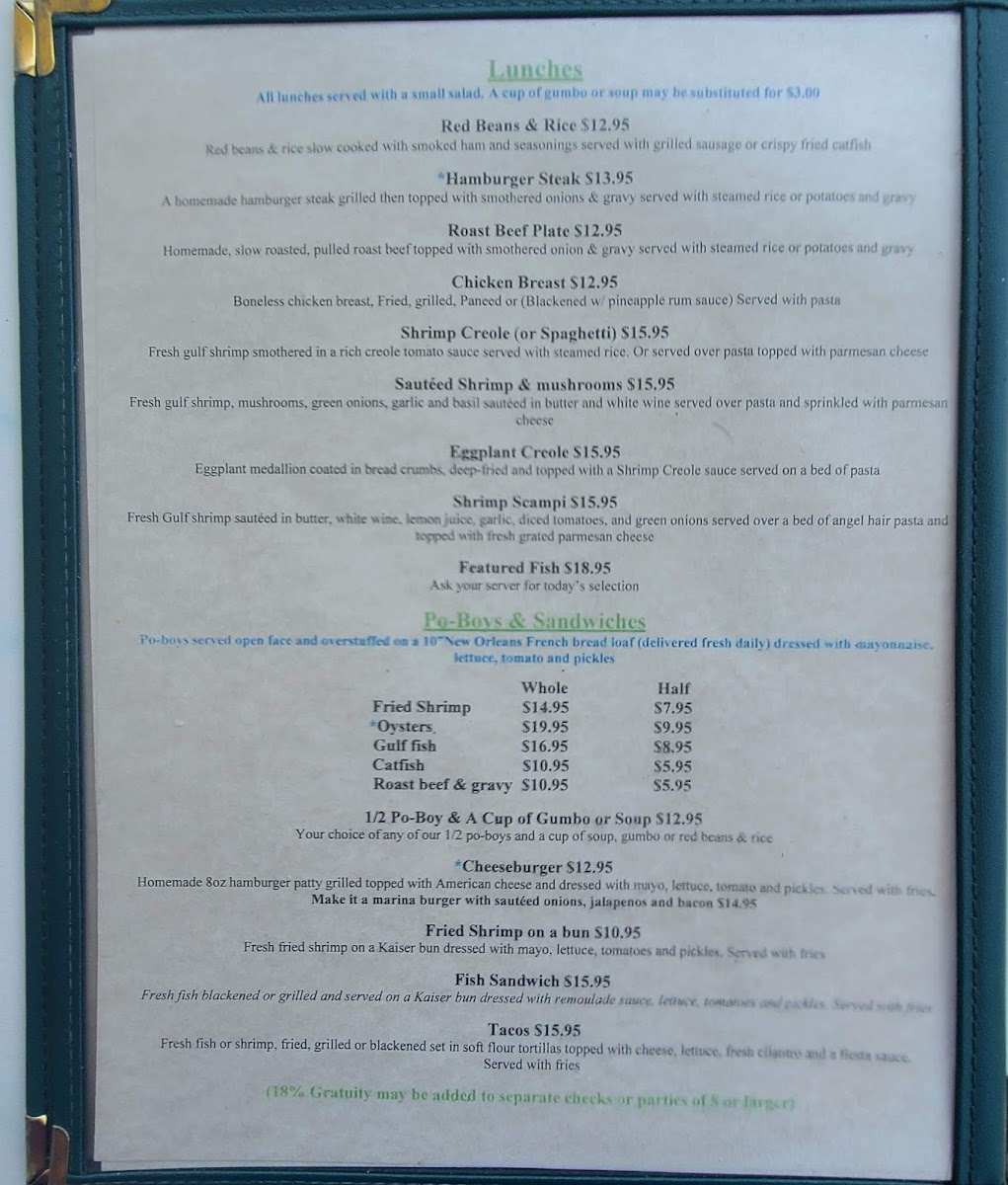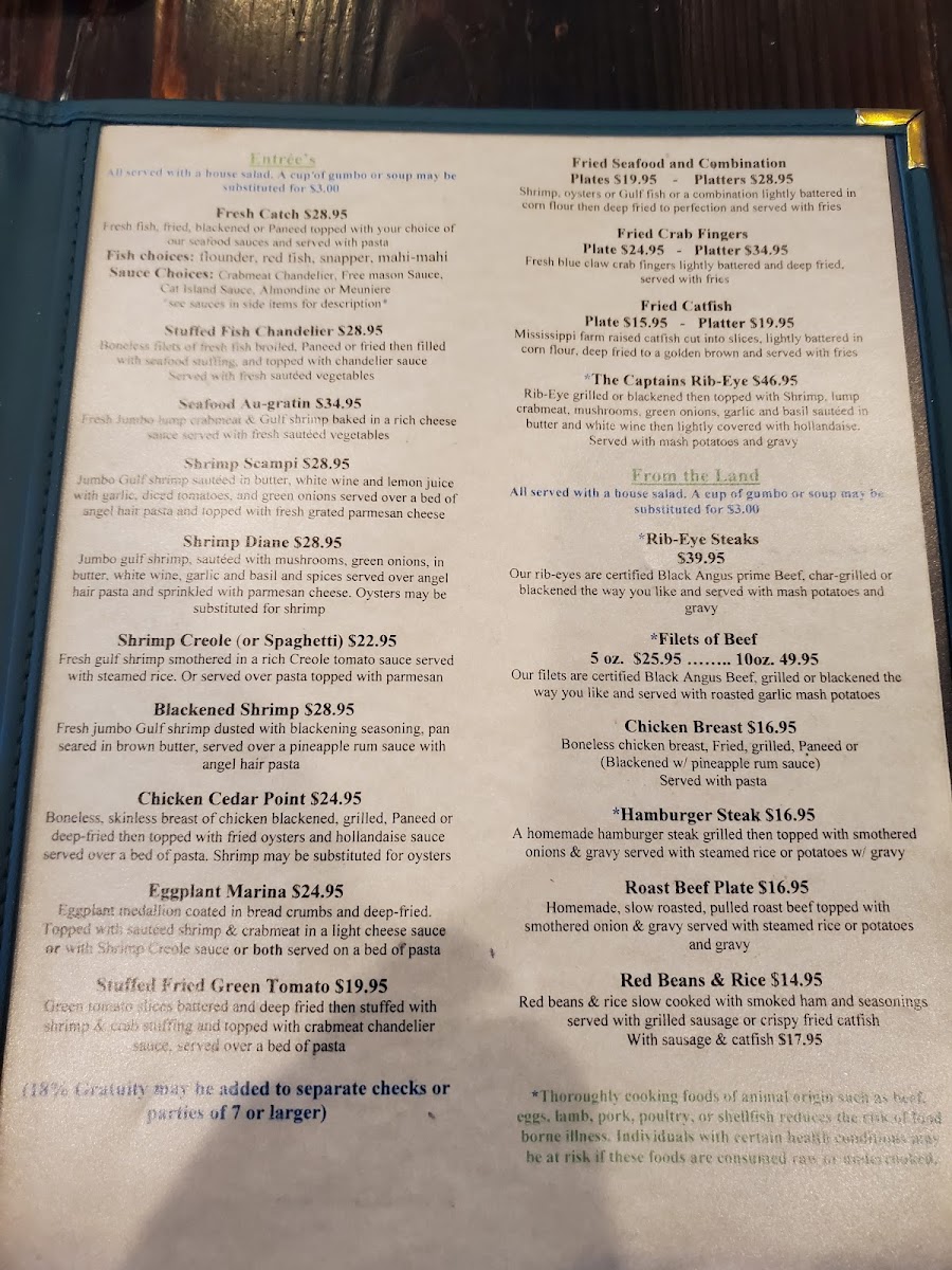 Fresh fish, fried, blackened or paneed topped with your choice of our seafood sauces and served with pasta fish choices: flounder, red fish, snapper, mahi-mahi sauce choices: crabmeat chandelier, free mason sauce, cat island sauce, almondine or meuniere *see sauces in side items for description*