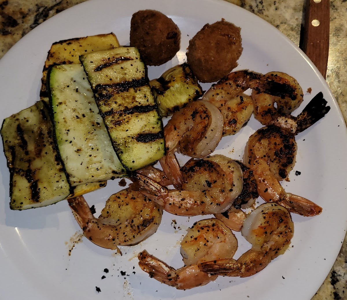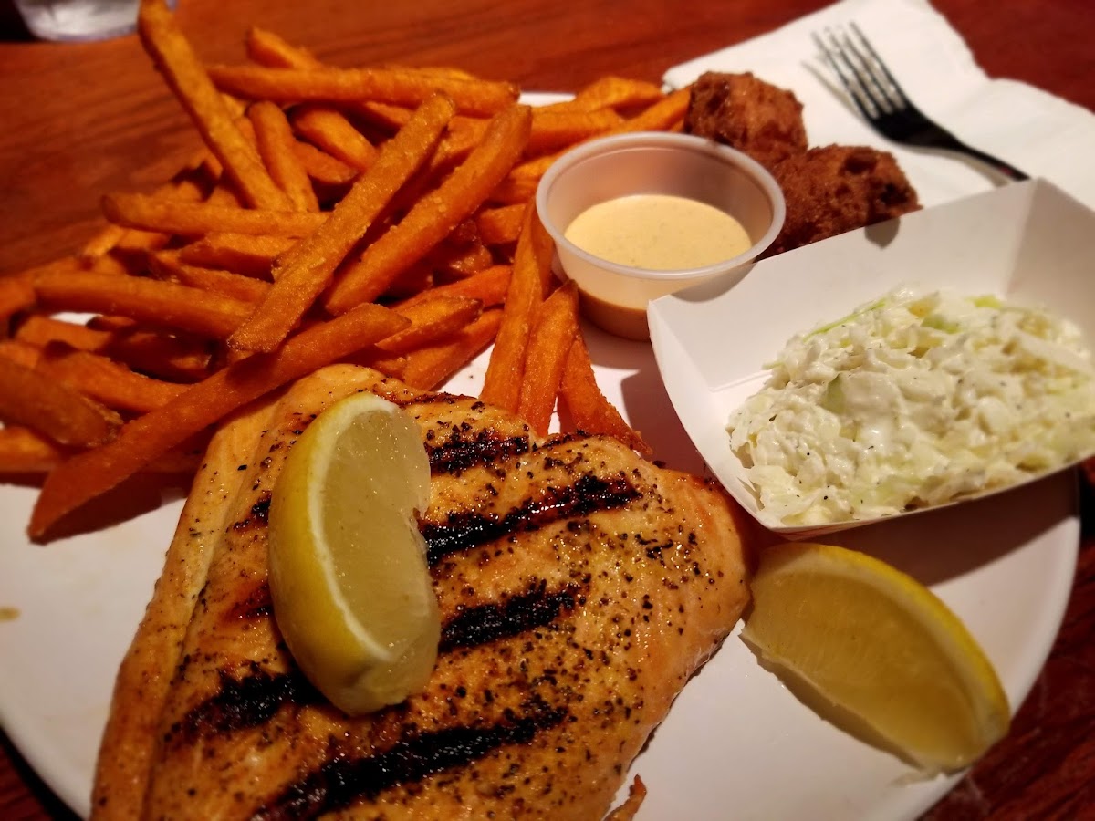 Simple, clean, good. This is a small venue but the food is delicious. I had grilled shrimp with grilled veggies of squash and zucchini, and everything was cooked perfectly with a crisp bite, not drenched in oil or grease like I've had elsewhere. The salad is just lettuce, a sliced tomato, and a red onion slice, with a tablespoon of dressing on the side, but that's okay, it's all I needed. The hush puppies were small and dense with a browned crust. I've seen other reviews so I'll be back to try their steak.