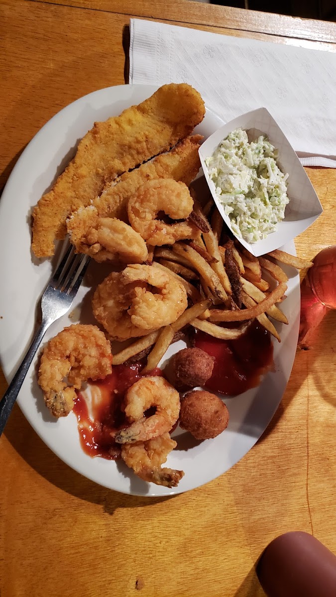 The parking lot is very small and hard to get into and out of. The shrimp was good. The catfish filet was tough and had no taste or seasoning.