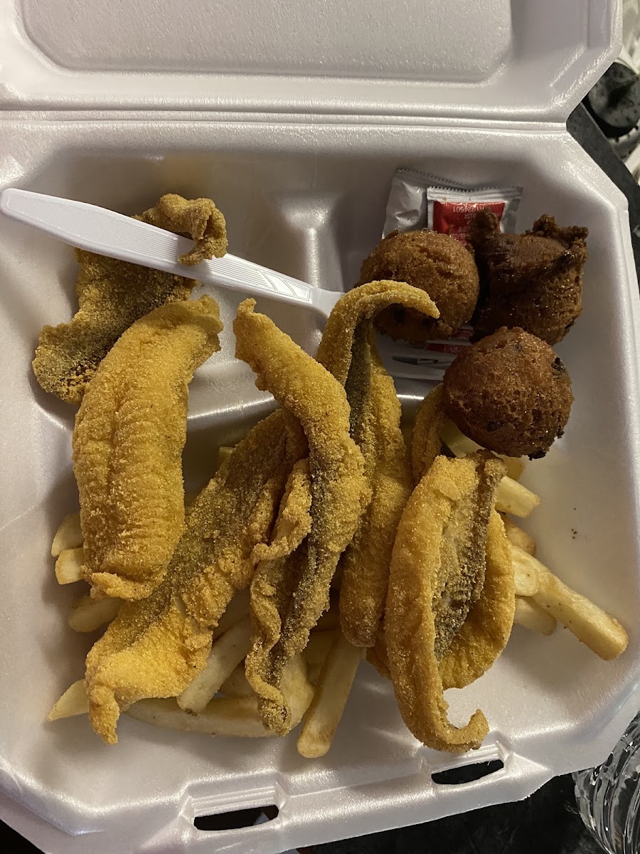 Change their name to Blue Fish Express. Excellent catfish fried oysters hush puppies in a few other great items. Call ahead with your order to save some time.