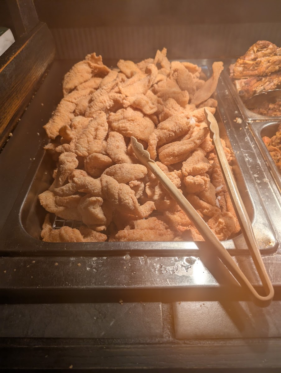 Good selection of food on the buffet. I wasn't impressed with the pulled pork, but I was there for the fish. The fish was seasoned well & not overcooked. Service could have been better.