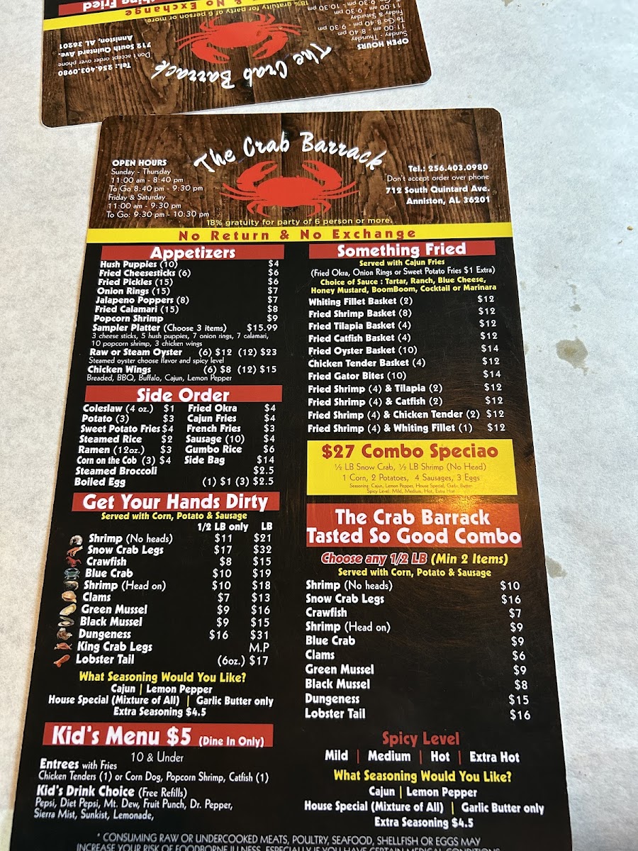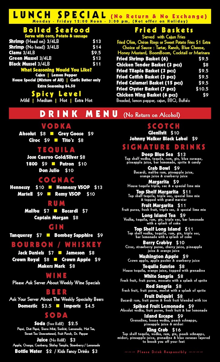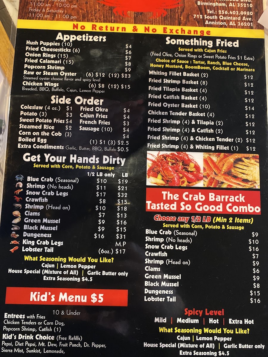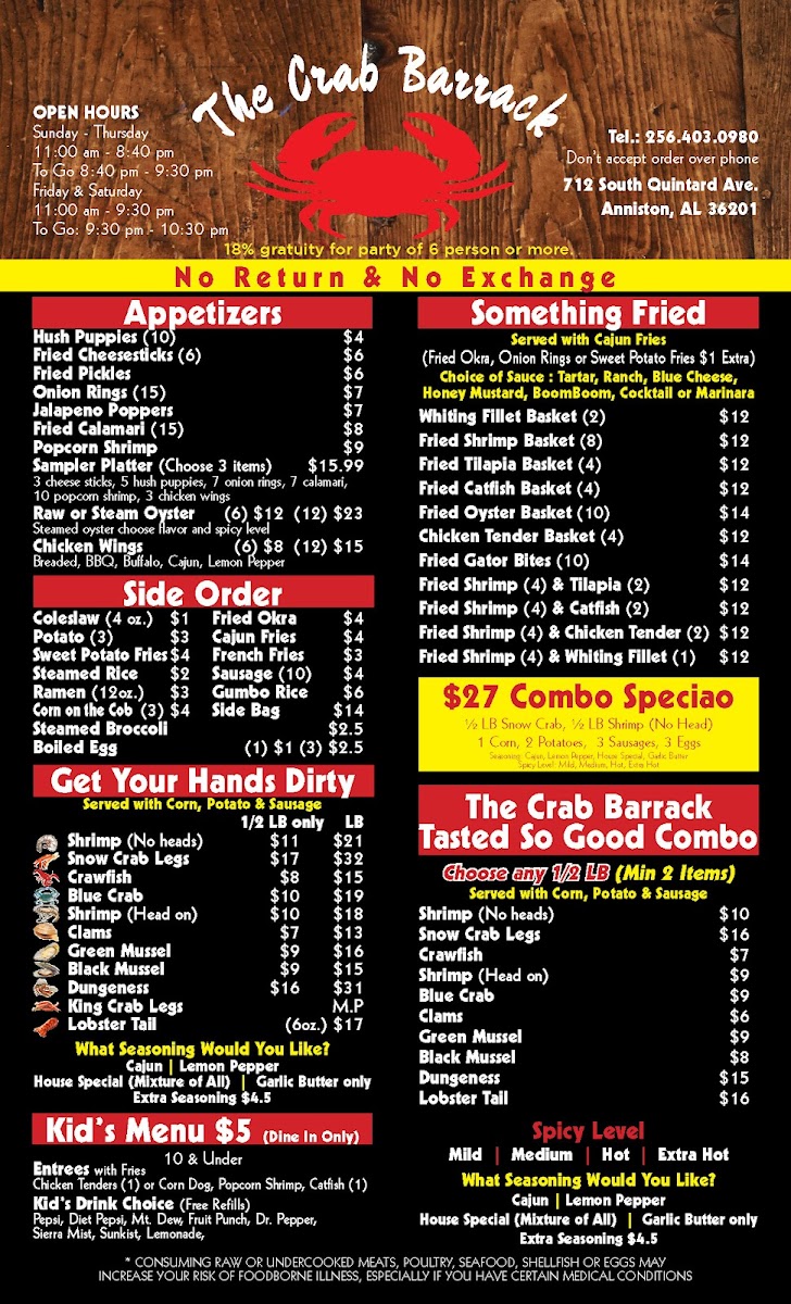 Choose any 1/2 lb (minimum two items). Served with corn, potato, and sausage.