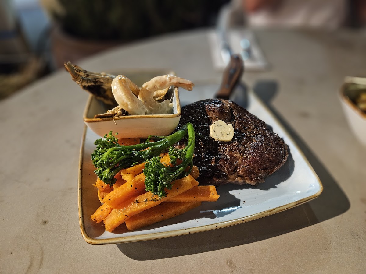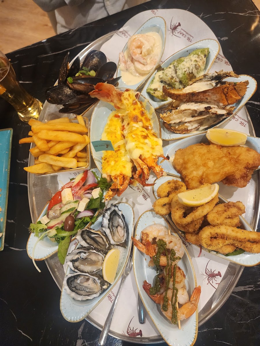 Awesome food and service. We spoilt ourselves with the platter ( pictured ) ...not cheap but good choices of seafood and very filling !! My wife went back with friends for lunch and had " ordinary " plates, excellent food and very reasonably priced. Ideal restaurant for that special occasion.