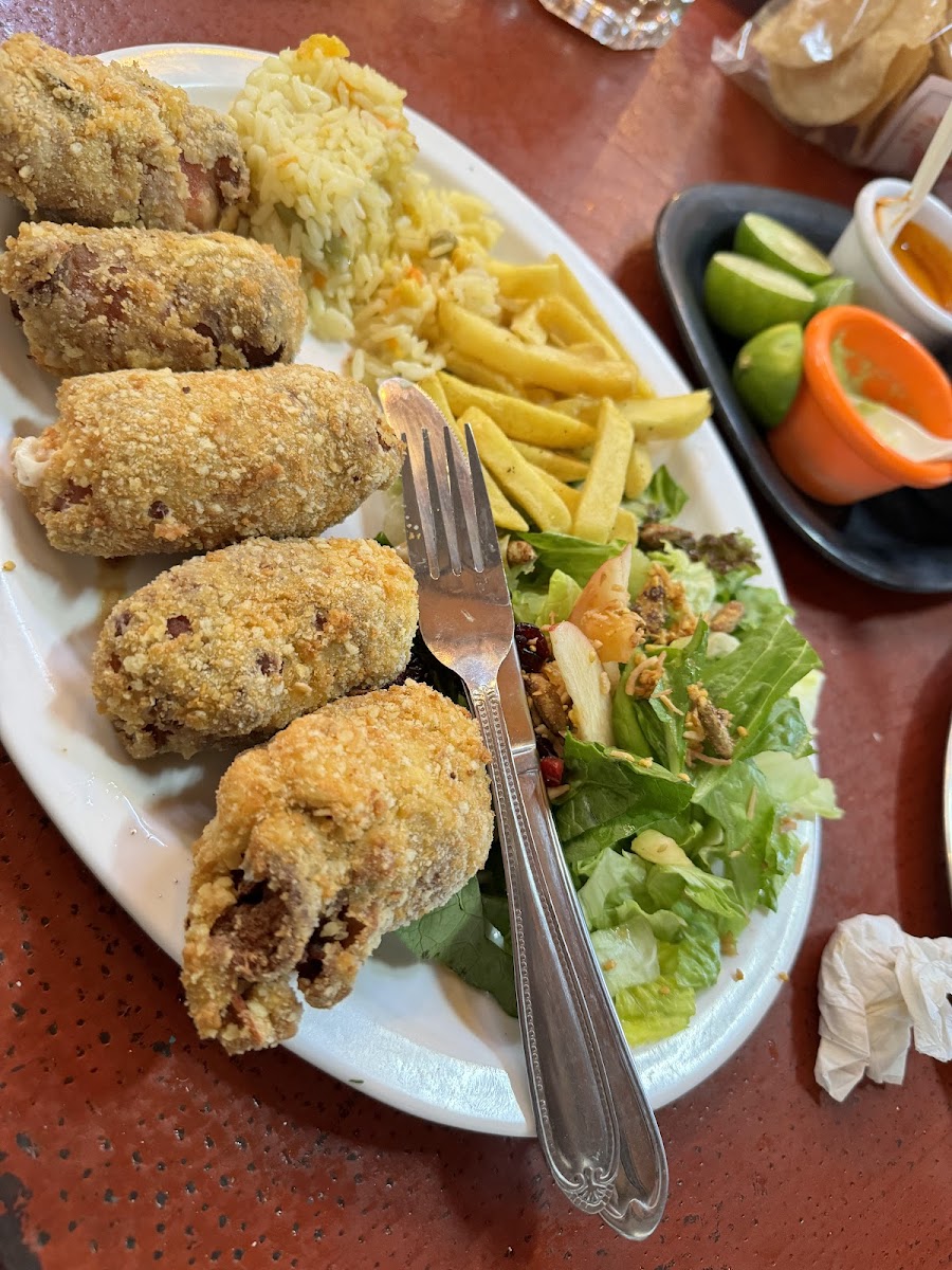 La comida está deliciosa y las bebidas también. Tienen iguanas, un cocodrilo, y un loro en jaulas para ver. También tienen un gato amable que si se deja tocar. También tienen unos juegos para los niños mientras esperan.