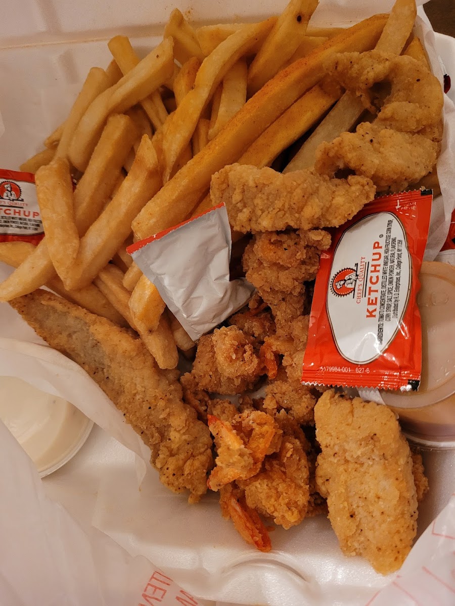 The food was excellent. But, the hush puppies & tartar sauce were out of this world!! The fish & shrimp were fried expertly & the flavor was amazing! The fries were perfect and so well seasoned! This is my new favorite fish spot!!