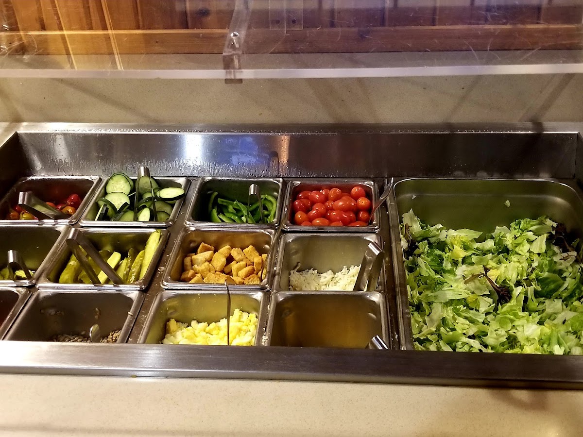 Great salad bar (go to both sides since each has some different items). Service was great. Menu items were great (I get the Great Lakes Catch - pan fried perch, bluegill and walleye). All in all a great place to eat. My only draw back was the building which is quite dated and lacks proper air conditioning. Also some of the floor is unlevel.