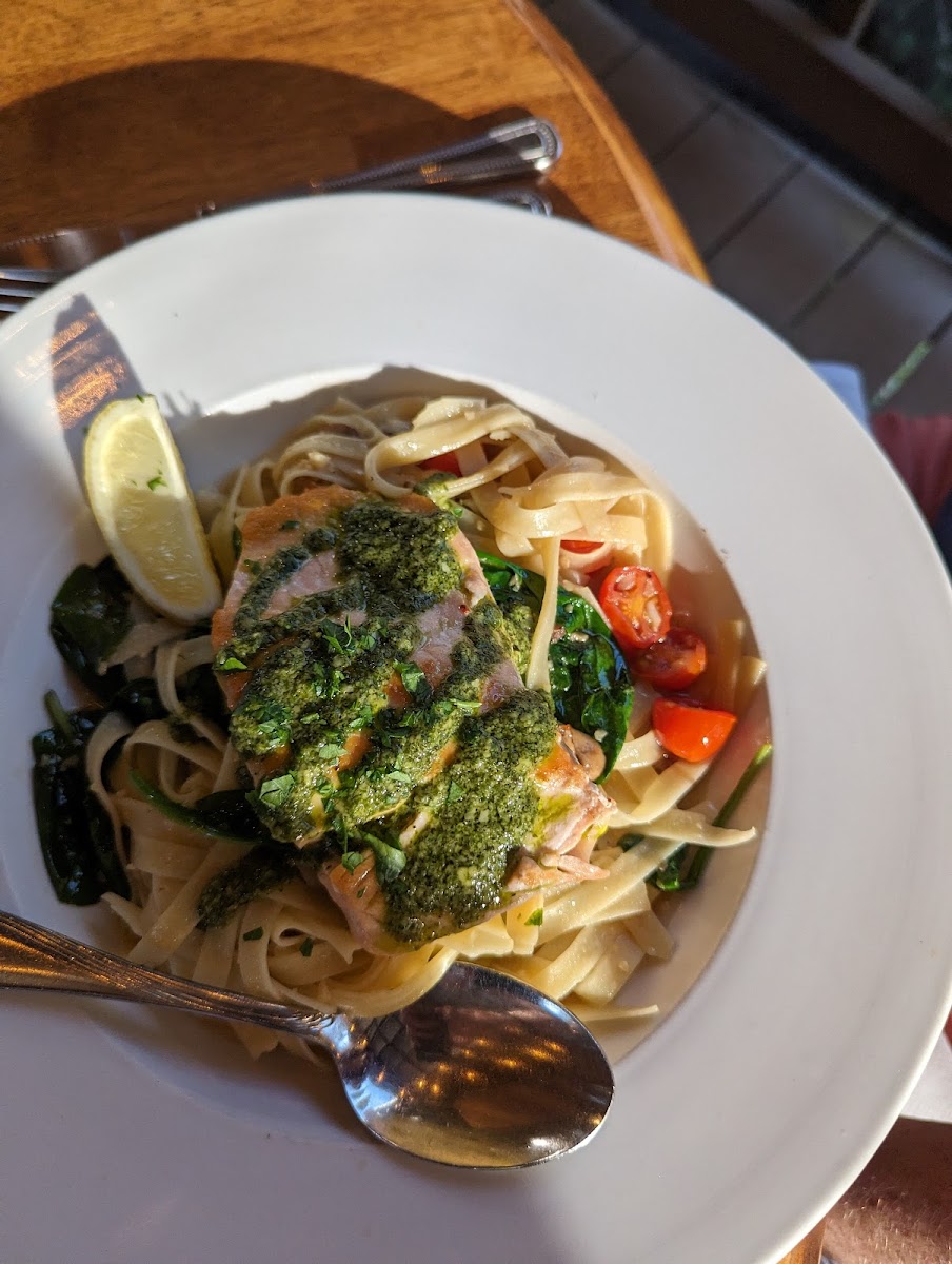 Good crowd, and busy for servers on a Tuesday evening. We walked right in to our group table reservation. The food fresh, delicious. The salad greens are served cold and crunchy! Service was prompt at all the normal intervals. Server attention after food placed for a bit was tedious for myself and 1 other, we had questions about items not present within our meal. She received her Salmon for her salad, I ate my meal as served. Great wine and beer, we had both. Everybody in our group were very pleased with the deliciousness of their meals!