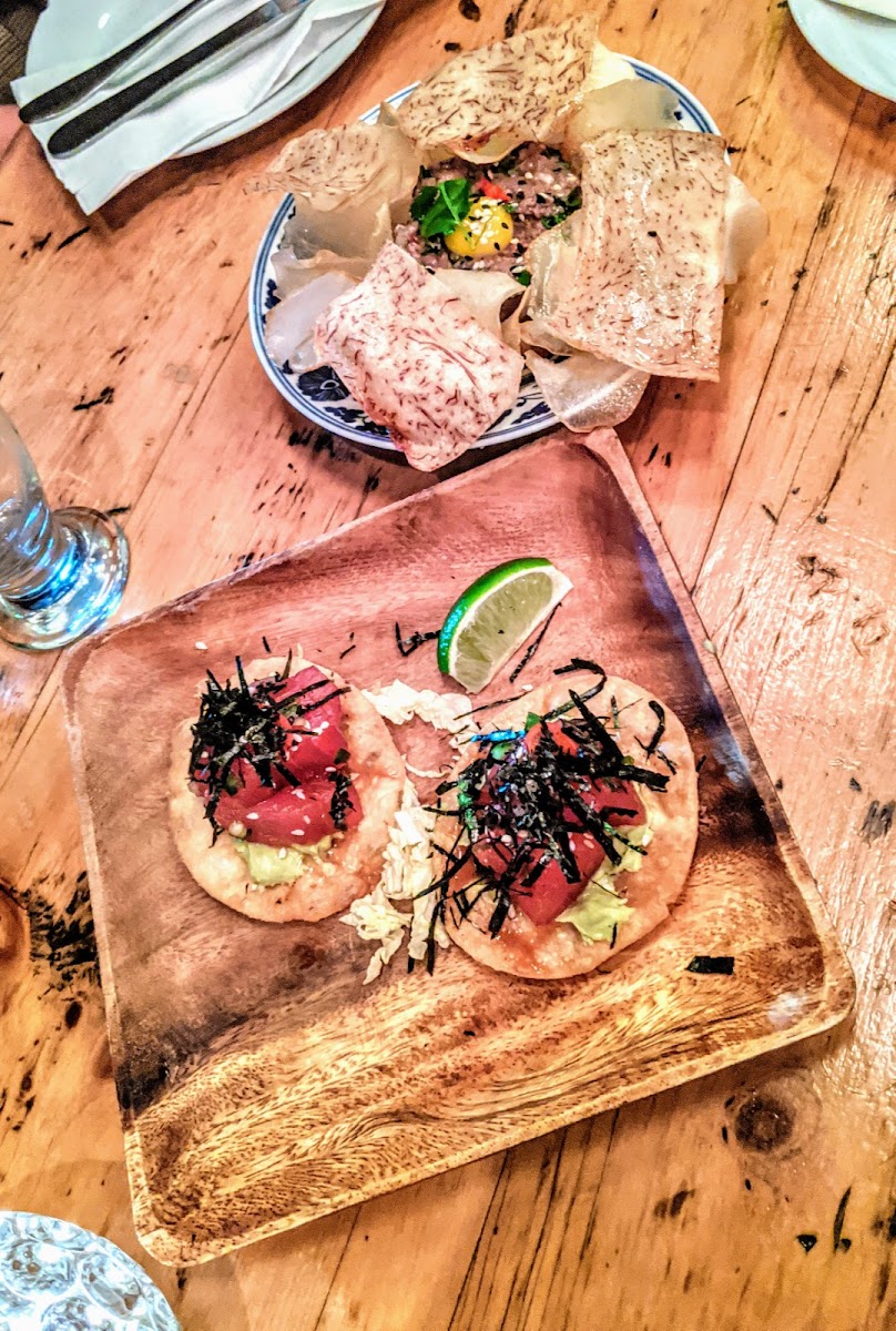 Follow @bredgyeats for more food pics! An eclectic bar with wonderful small bites where the ahi tuna tostada is the star. The wonton wrappers are delightfully airy and crisp, which somehow support the generous portion of ahi tuna piled high and marinated with a well-balanced soy yuzu sauce that brings a burst of tangy umami. The avocado adds a wonderful creamy bite and is topped with nori flakes and chilli peppers. The Taiwanese baos were also popular, easy to pick up and bite with some nice flavours. The chicken is crisp and juicy and slathered in an umami-rich gochujang sauce that's balanced with the pickles. The pork adobo is braised low and slow to render out the fat so it melts in your mouth.
