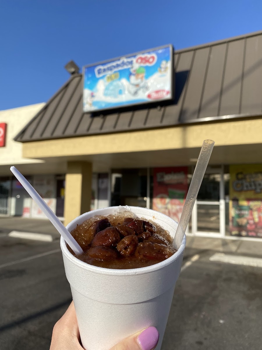 Raspados Oso Polar is a hole in the wall kind of place that does not disappoint. ‘‘Twas the night before Christmas Eve which we all now is the real Mexican Christmas. My baby boo and I were running last minute errands and wanted a snack, so we popped up ol’faithful google maps and looked for a place to relax. I didn’t want to go to Michoacana because the place has music so loud it sounds like a congal, and I’m so good looking, my boo says I’m a gray fox but I have the same power as a young stallion I didn’t want attention. I ain’t trying to swing, I’m trying to relax. We found Oso Polar and we were glad. The place had super relaxing vibes, with the nostalgic El Chavó playing in the background, took me back to when I watched them as a child in a television that weighed almost 500 pounds and had the screen size of a shoe box. We went with simple options, the pico de gallo and the papas locas. Everything was freshly prepared. Any table you sit at has chile, chamoy, and chile en polvo. So you can season at your discretion, I really appreciated that. It was 10/10 delicious and now my go to spot.