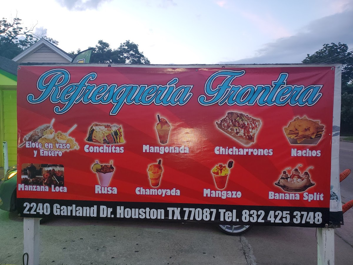 Refresqueria Frontera is a snack bar located at 2240 Garland Dr, Houston, TX 77087. It has attracted 79 user reviews. Peak wait times occur on Tuesday between 4:30 PM and 8:30 PM, Wednesday from 6:30 PM to 8:00 PM, Saturday between 6:30 PM and 10:30 PM, and Sunday from 7:30 PM to 9:30 PM, with wait times up to 15 minutes. Their featured offerings include Chamoyada, Manzana Loca, Shaved Ice, Mini Banana Split, and the Gorditas Deliciosas Plate. This selection highlights a focus on refreshing, sweet treats and snacks ideal for casual visits during busy times.