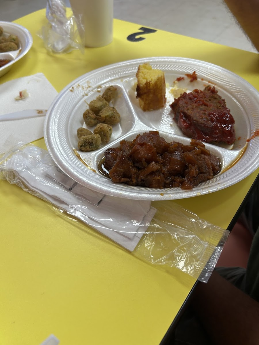 Food was really good. Seasoned well. I had turkey necks, collard greens, and yams. Came with cornbread or roll and tea or lemonade.