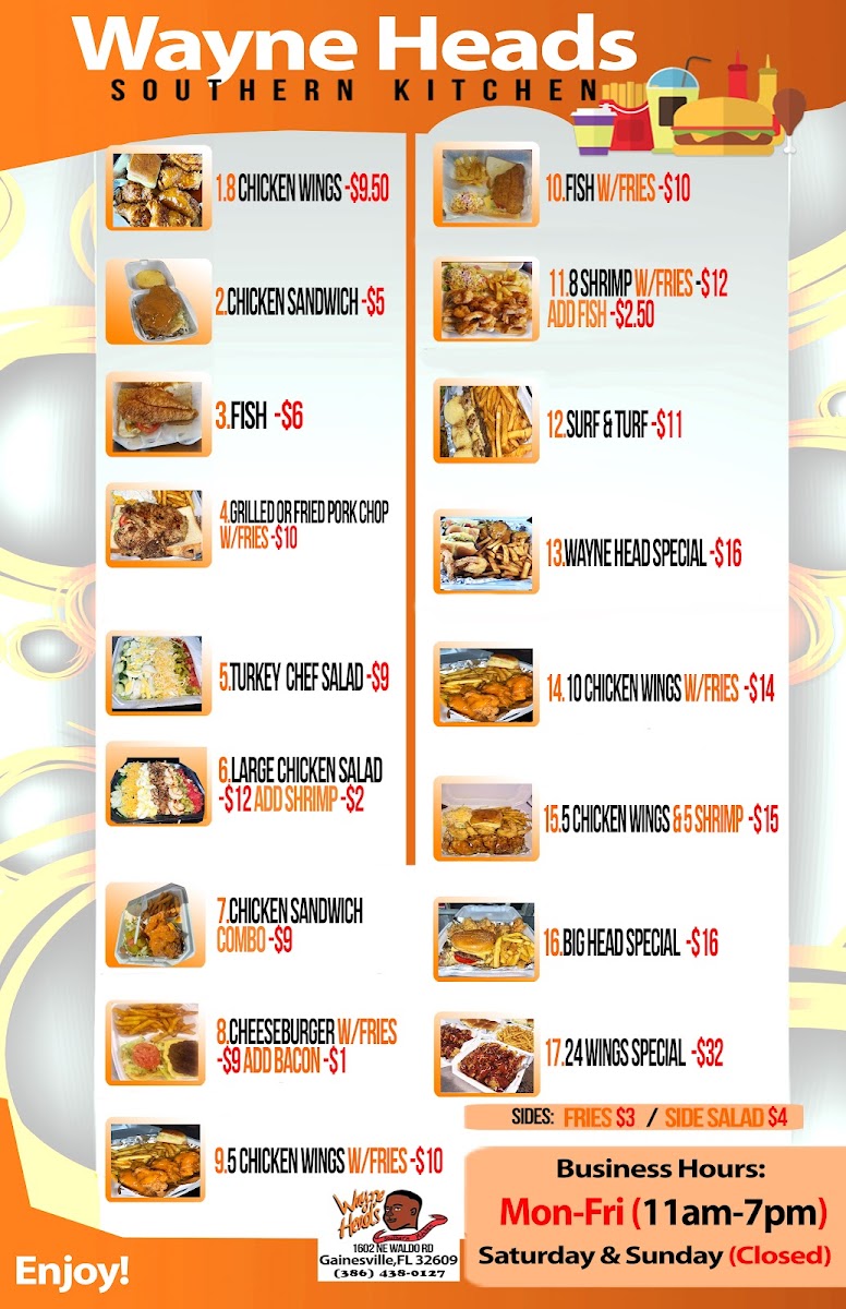 Wayne Heads Southern Kitchen Menu