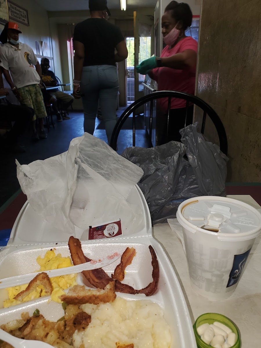 Imma be honest i was scared to try it, its a hole in the wall location with no parking except maybe the lot across the street for the sav mor place and the whole surrounding area looks like its about to be shut down but that food was good i got the meat loaf and mashed potatoes and i was happy the people were nice and funny