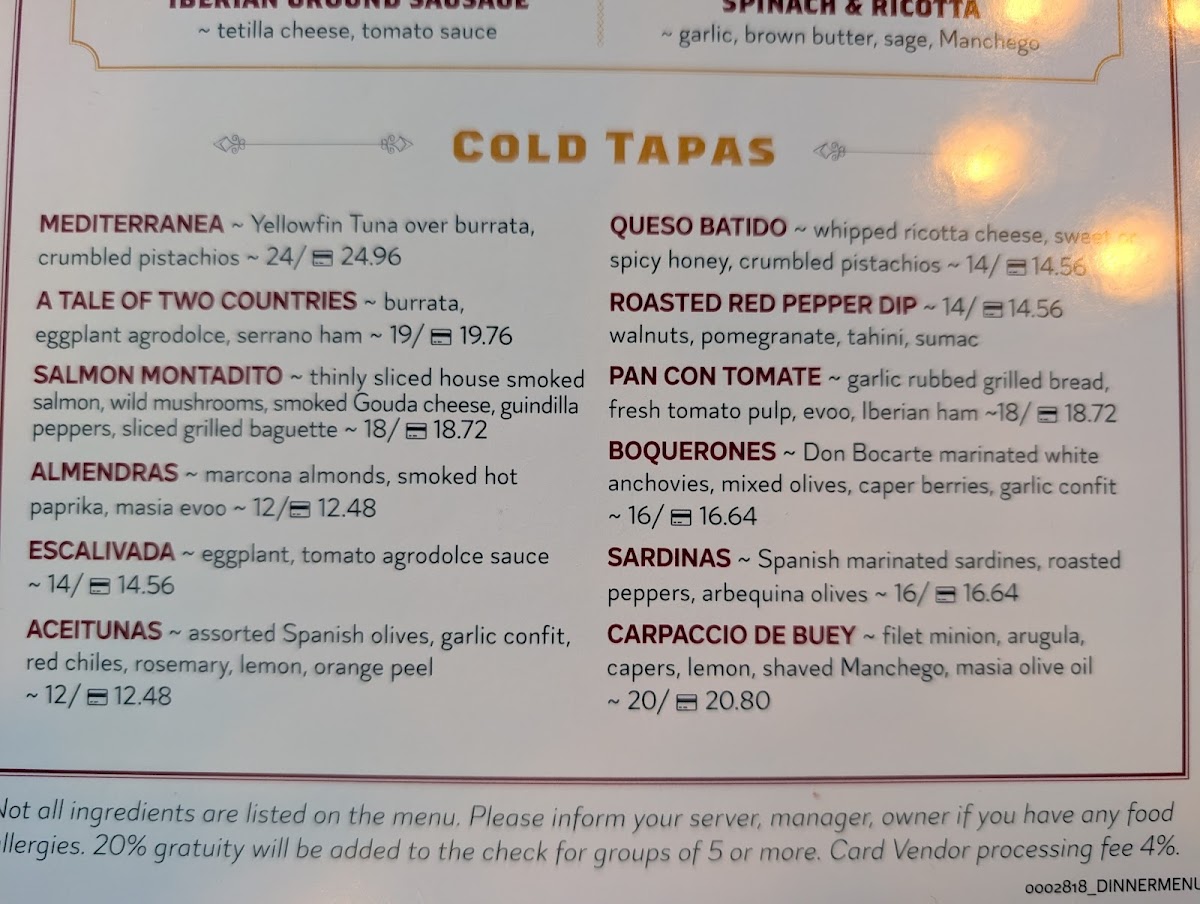 Dinner - Cold Tapas