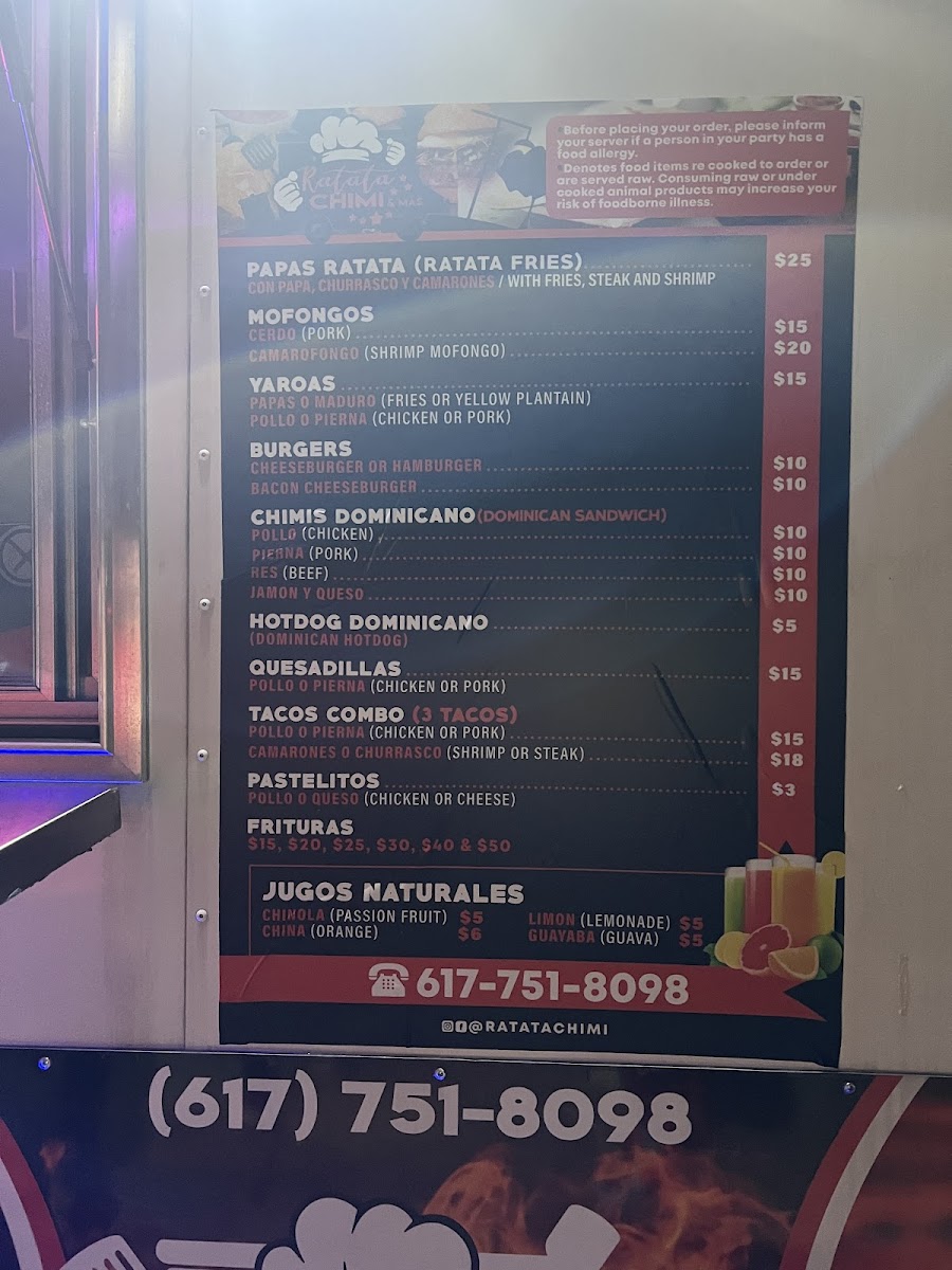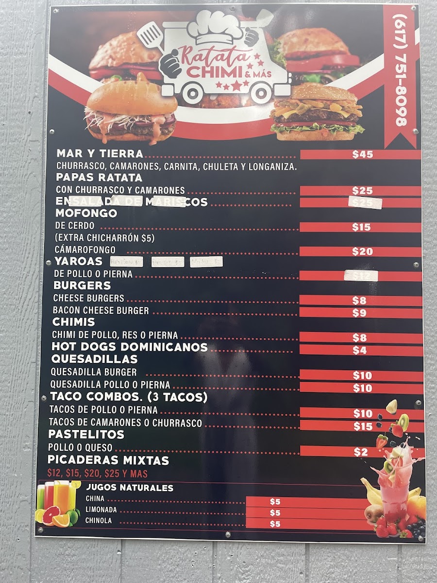 With fried plantains, steak, shrimp, pork chops, dominican sausage and chicken tender. Con tostones, churrasco, camarones, chuleta, longaniza y pechurina.
