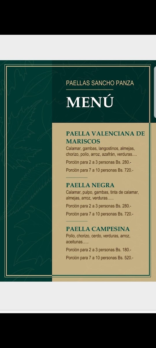 Arroz, azafrán, calamar, gambas, chorizo, pollo.