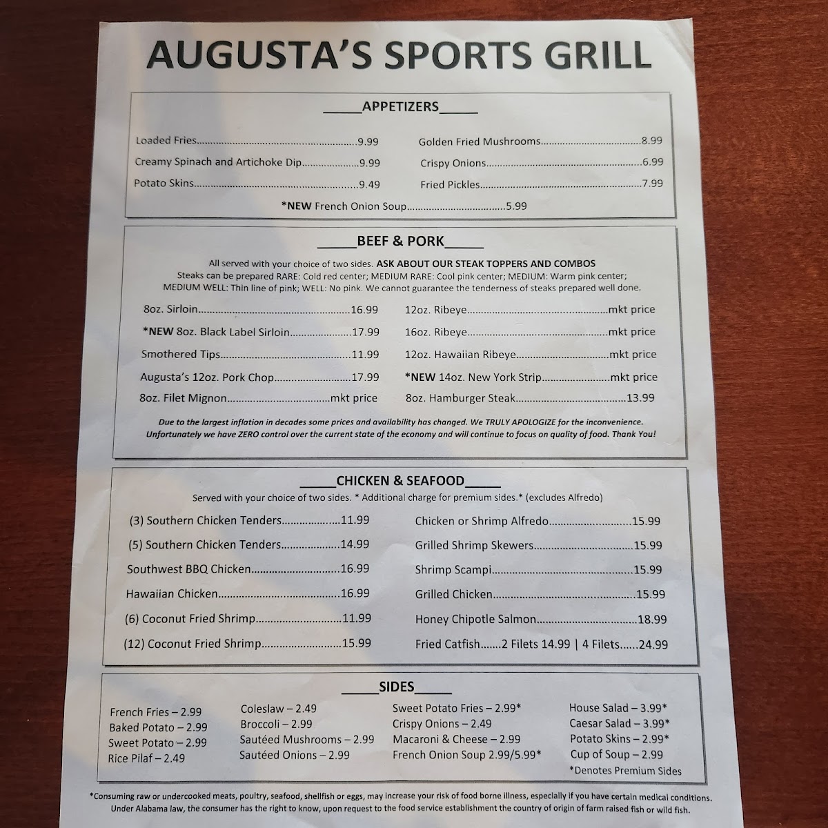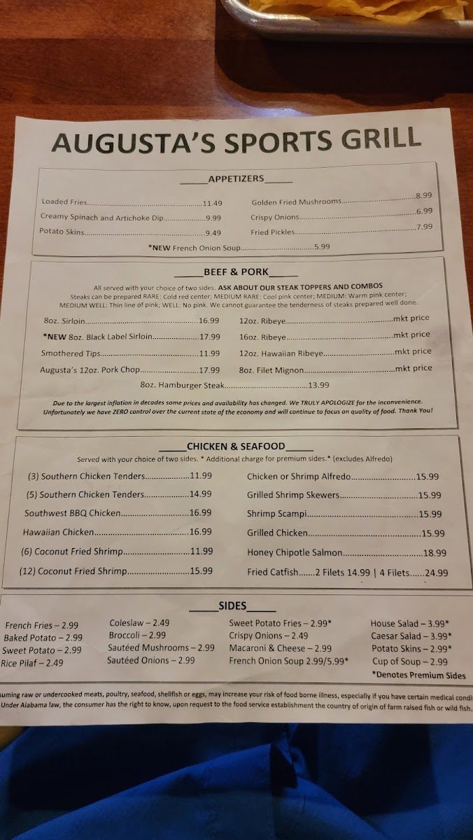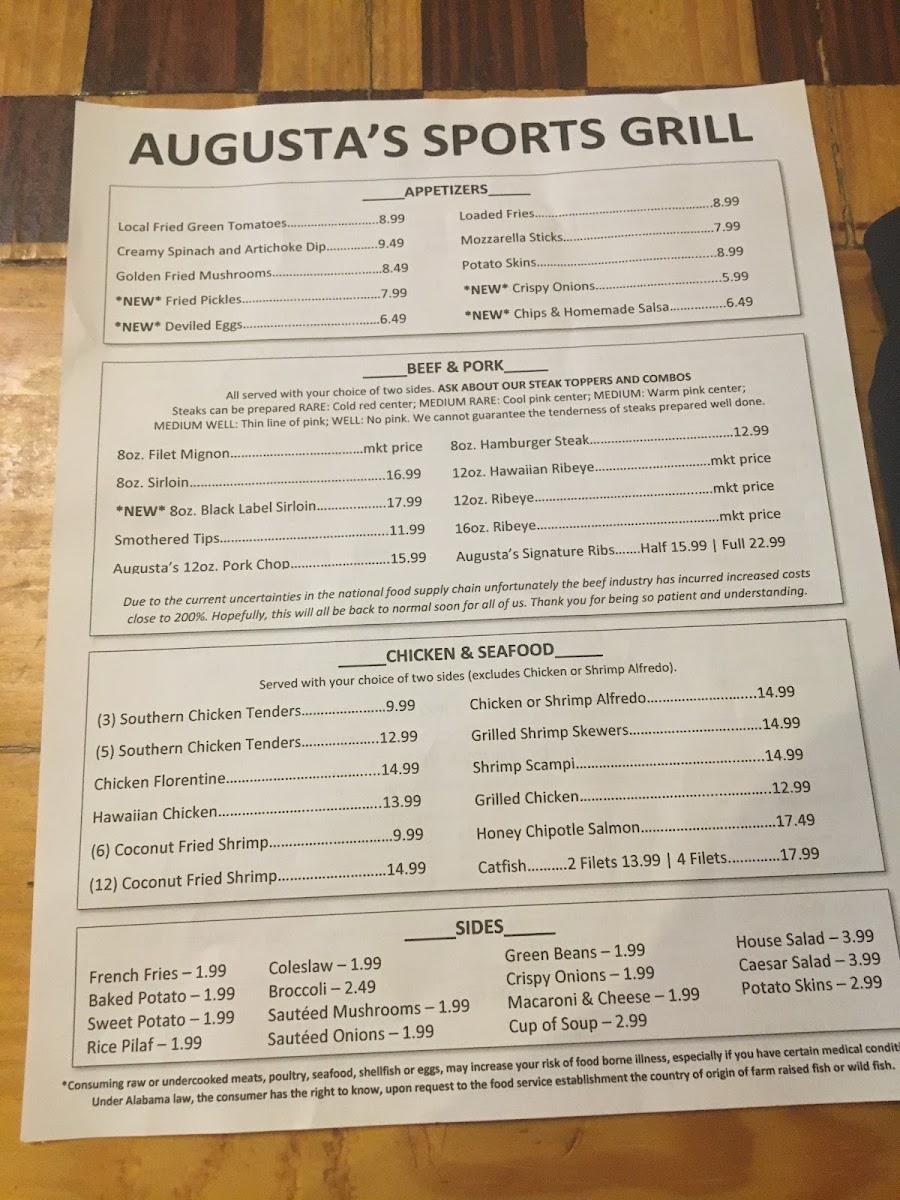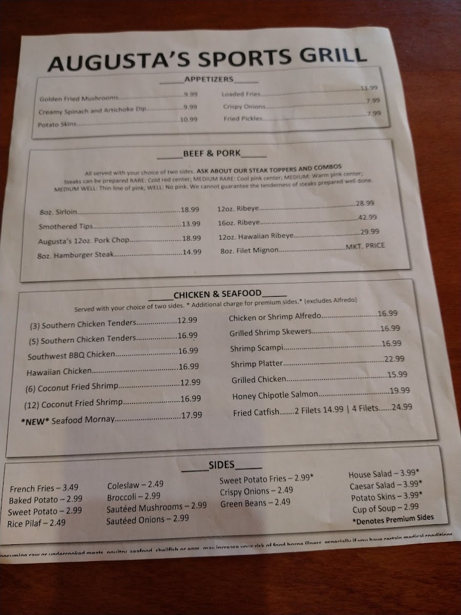 Bone-in center-cut pork chop. Grilled and seasoned with Augusta's special blend.