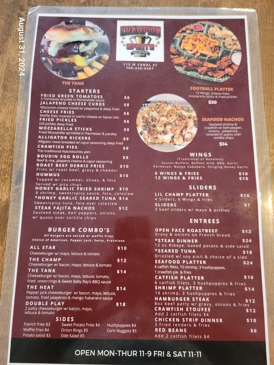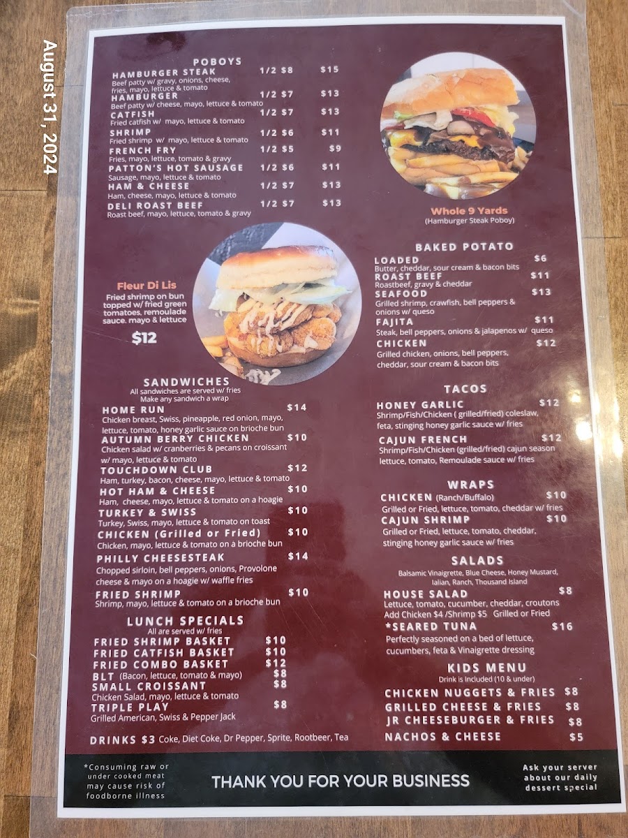 Shrimp/Fish/Chicken (grilled/fried) cajun season lettuce, tomato, Remoulade sauce w/ fries.